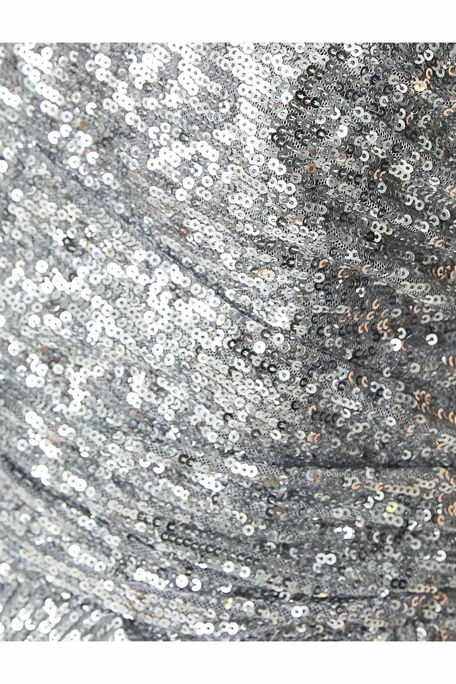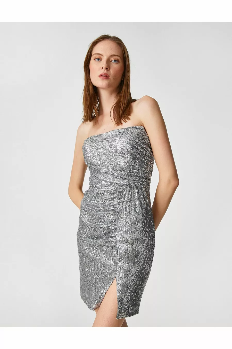 Мини-платье с пайетками Без бретелек Металлический разрез Детализированный