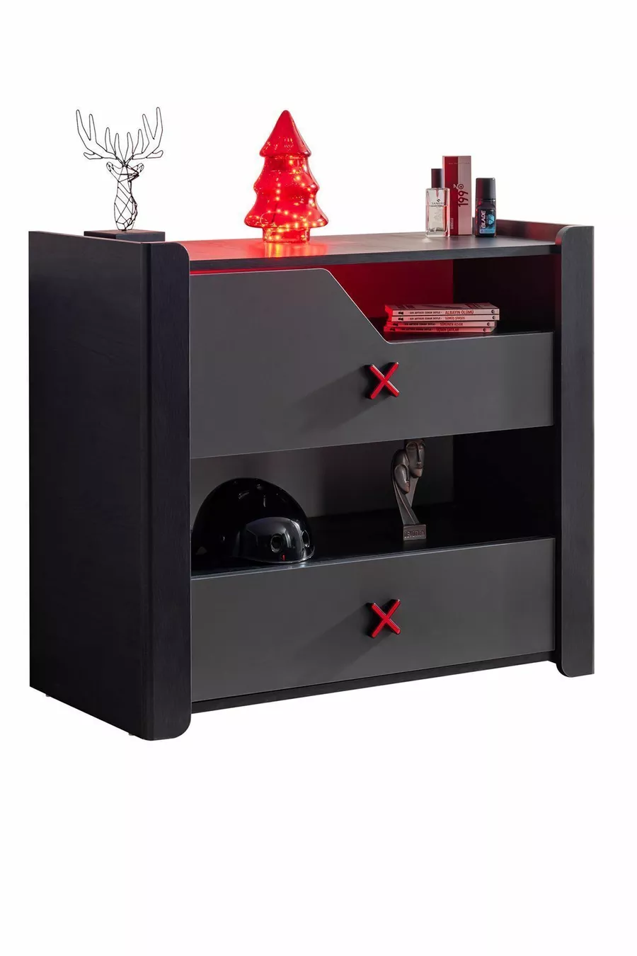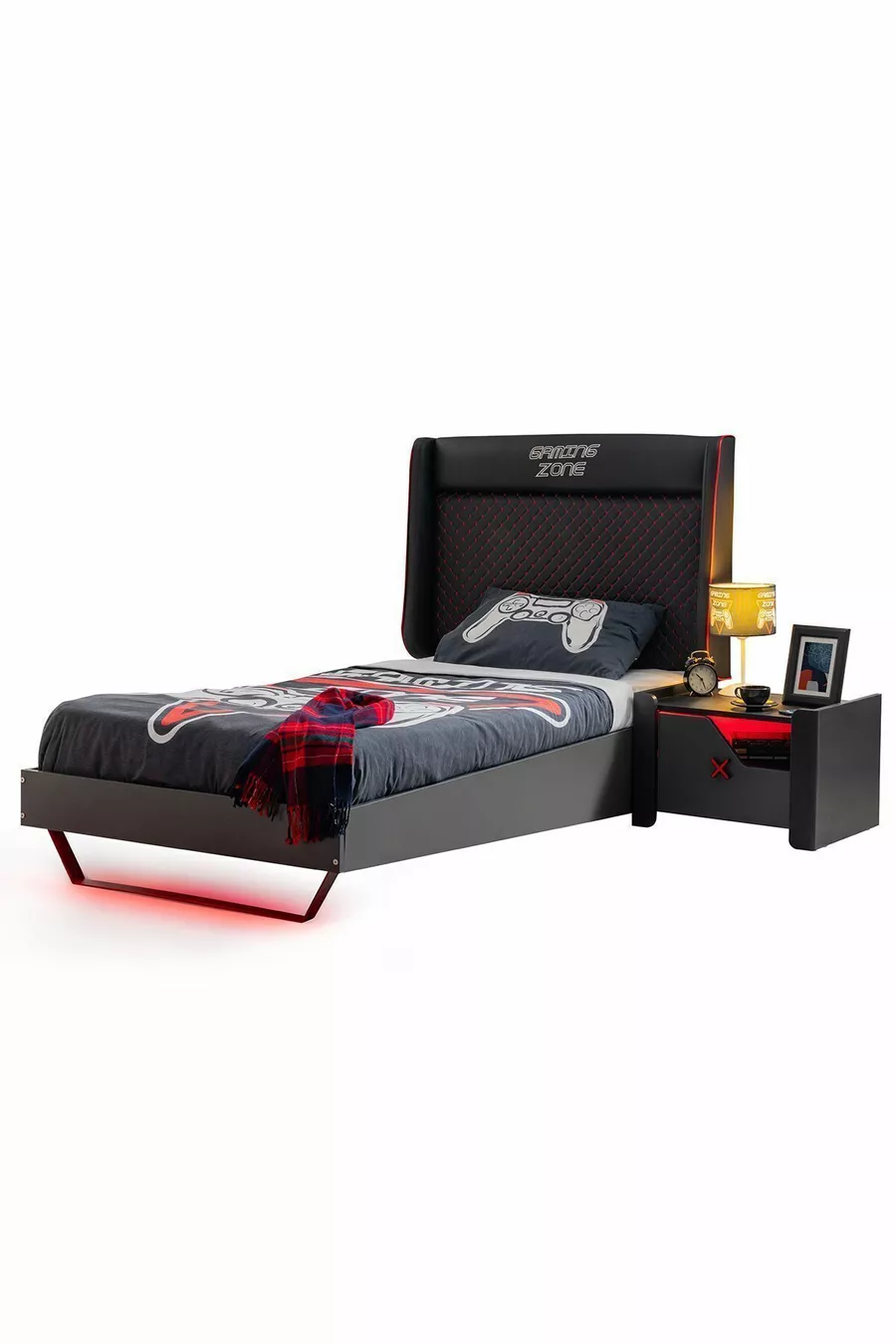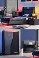 Молодежная комната с подсветкой для геймеров - шкаф с 2 дверцами, кровать, тумбочка, комод, стол