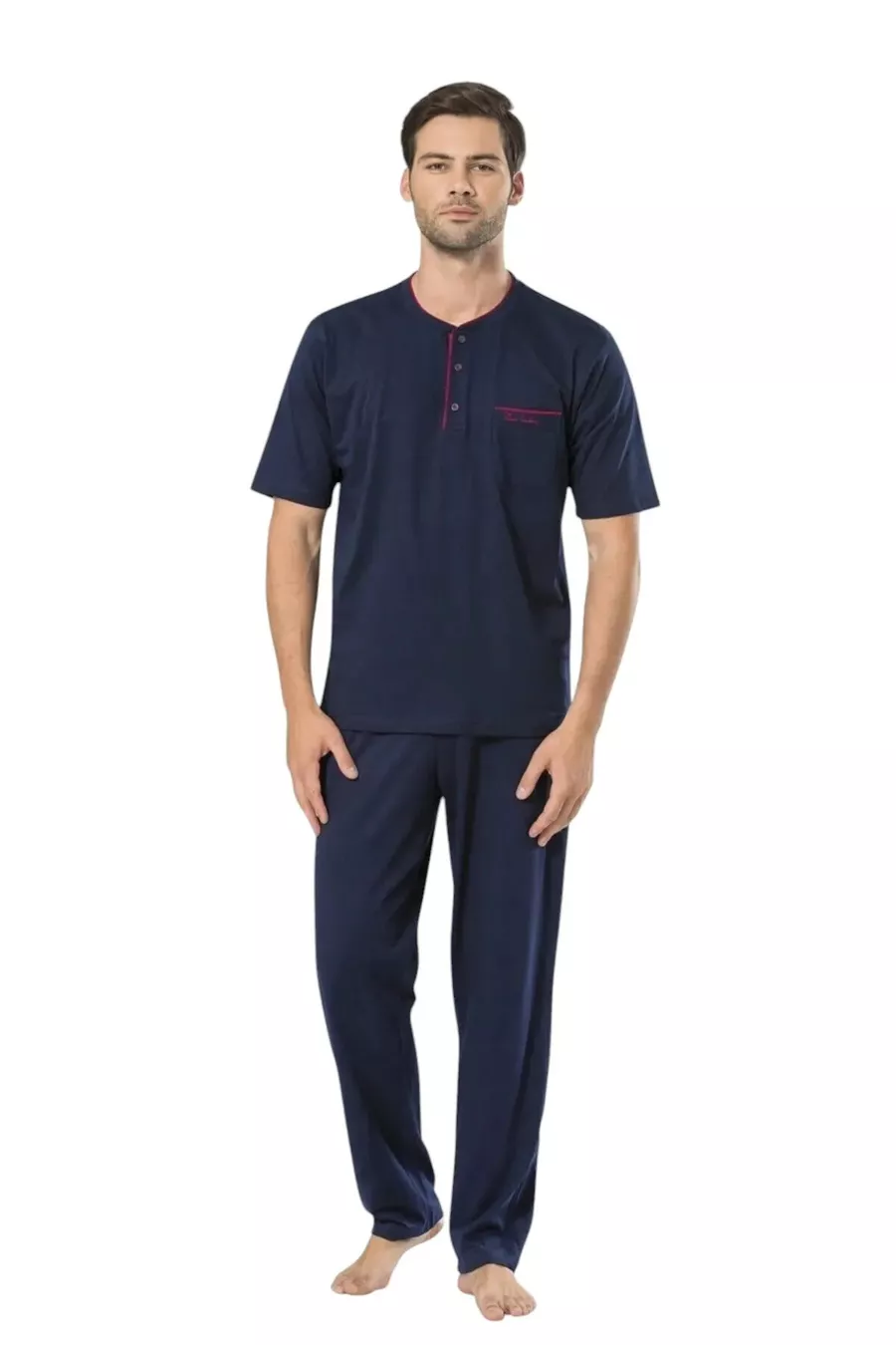 Тип рукава: короткий рукав Детали устойчивости: нет Узор: однотонный Воротник: рубашечный воротник Длина брюк: длинные Цвет: темно-синий Материал: 100% хлопок Тип продукта: однотонный Детали продукта: тканый узор Коллекция: домашняя одежда Комплект: футболка-брюки Длина рукава: короткая Техника: нет Крой: обычный Тип ткани: тканый Пояс: стандартная посадка Тип вязки: супрем Количество предметов: 3 предмета Силуэт: обычный Персона: стильный и комфортный Среда: домашняя одежда Дополнительные особенности: лицензированный Состав материала: 100% хлопок Инструкция по стирке: 30°C Тип низа: обычный Содержимое упаковки: 3 предмета Длина: длинная Сезон: все сезоны Страна производства: Турция