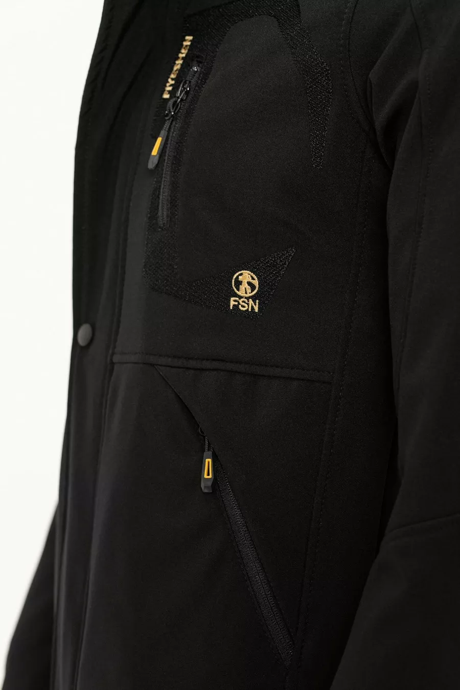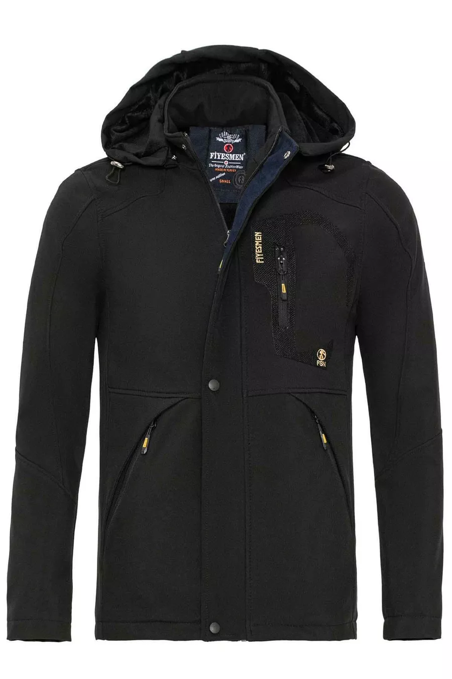 Мужская зимняя куртка из черного софтшелла с меховой подкладкой, водо- и ветронепроницаемая