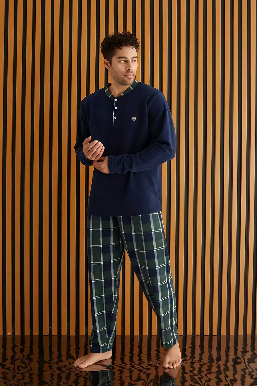 Мужская пижама из флиса с зеленой и темно-синей клеткой