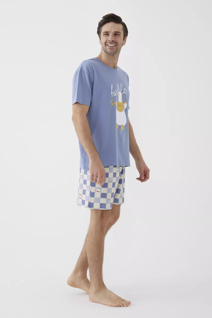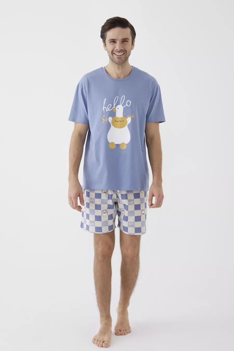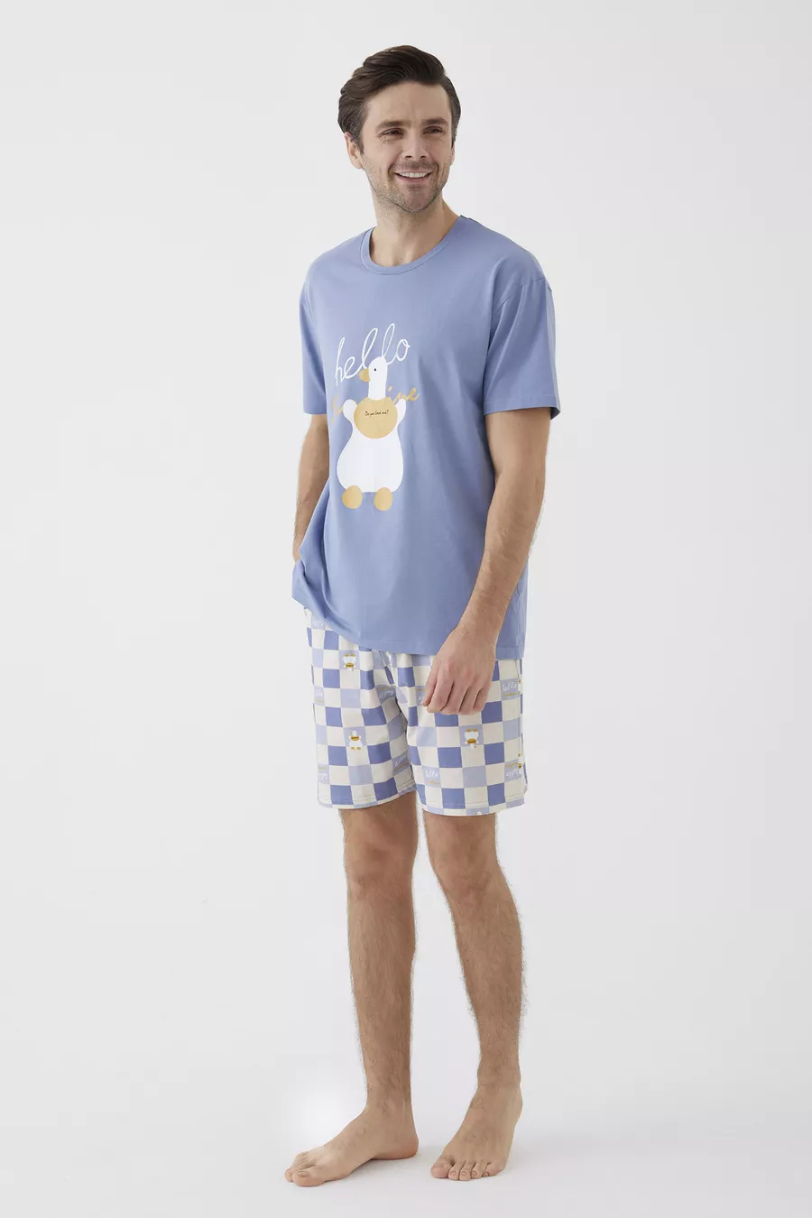 Мужская пижама с коротким рукавом и шортами, из хлопка, в клетку с принтом утки