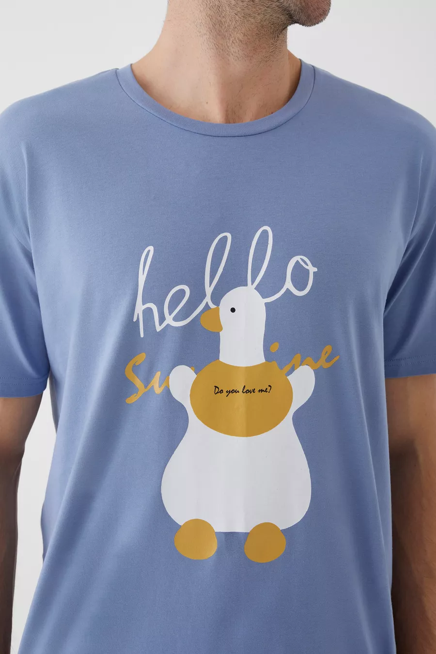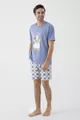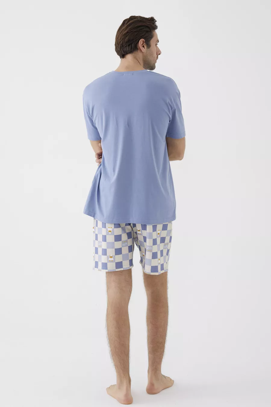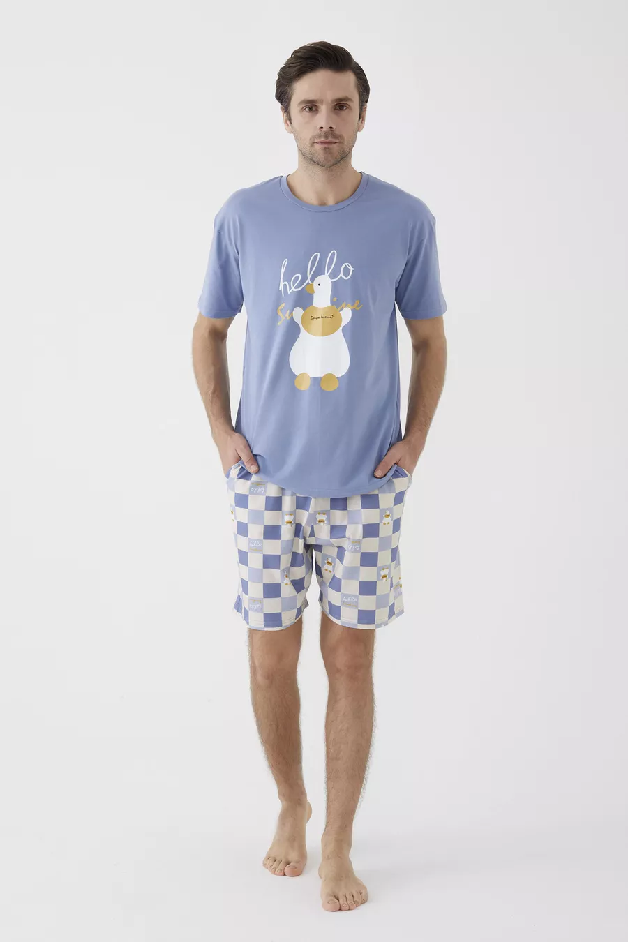 Мужская пижама с коротким рукавом и шортами, из хлопка, в клетку с принтом утки