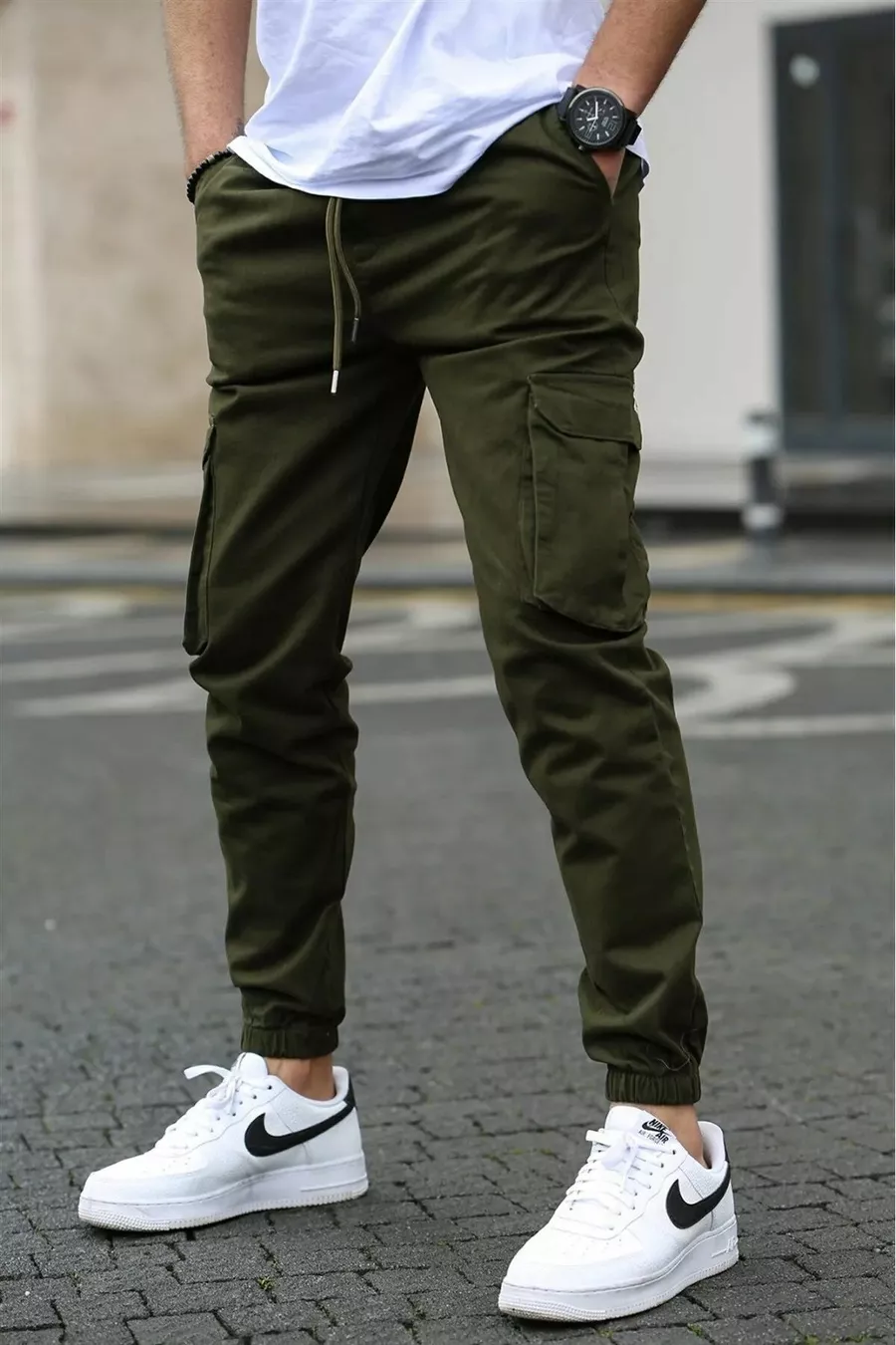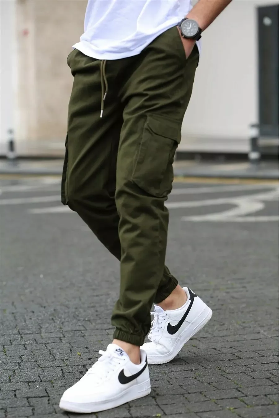 Мужские брюки с карманами на молнии, хаки, с боковыми карманами