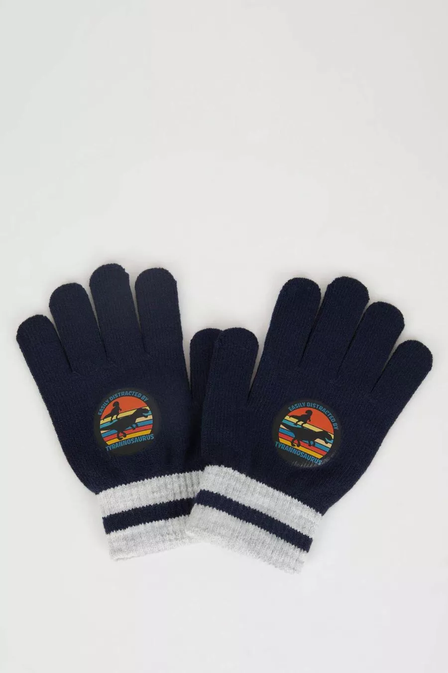 Мужские детские трикотажные перчатки с принтом динозавра и цветными блоками WN