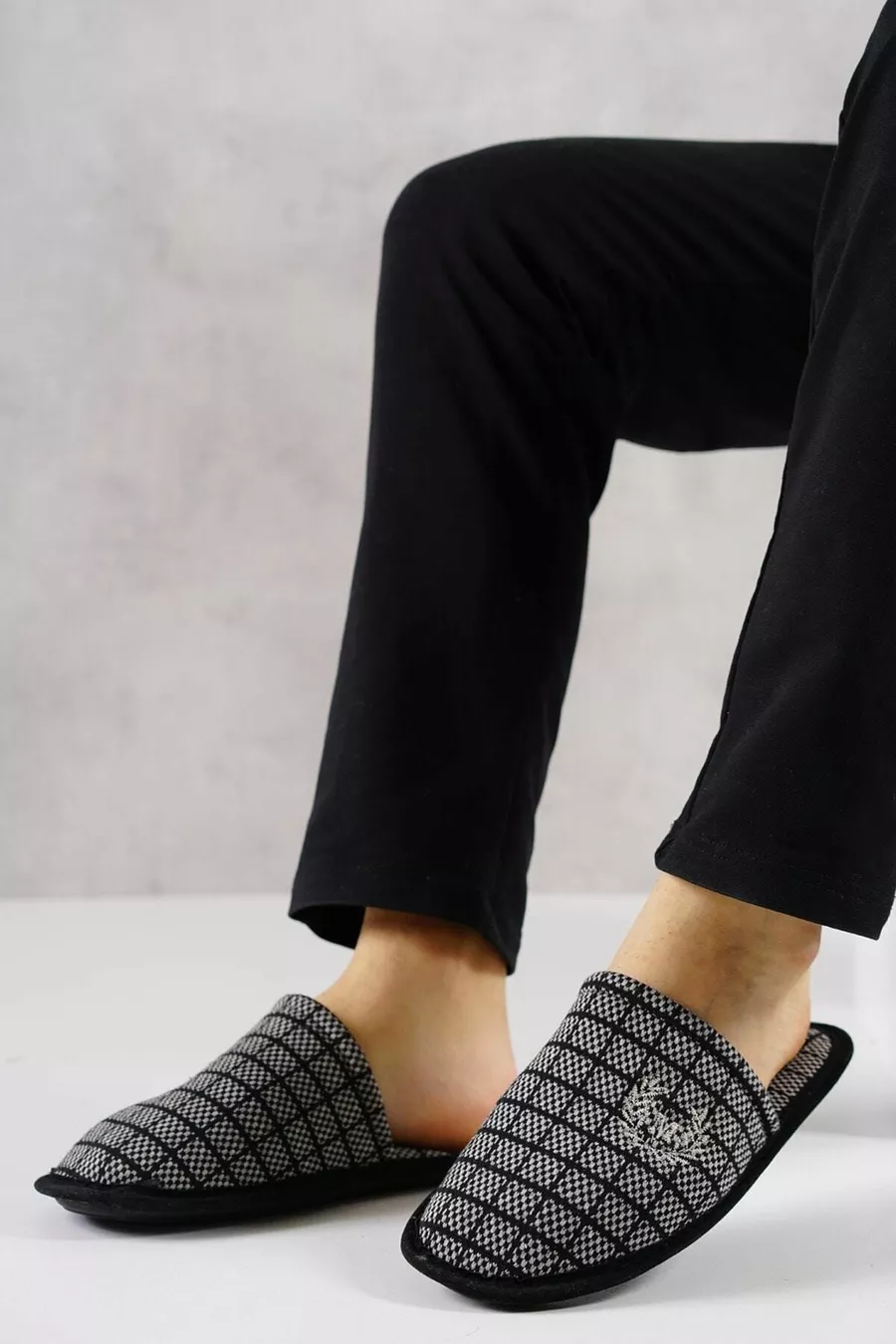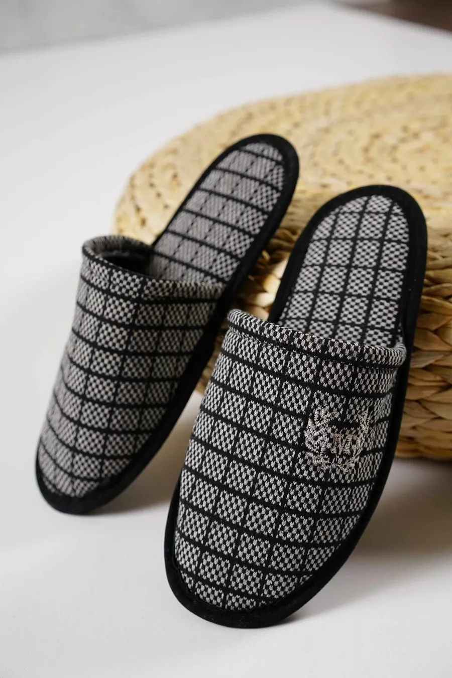 Мужские домашние тапочки квадратный узор коричневый