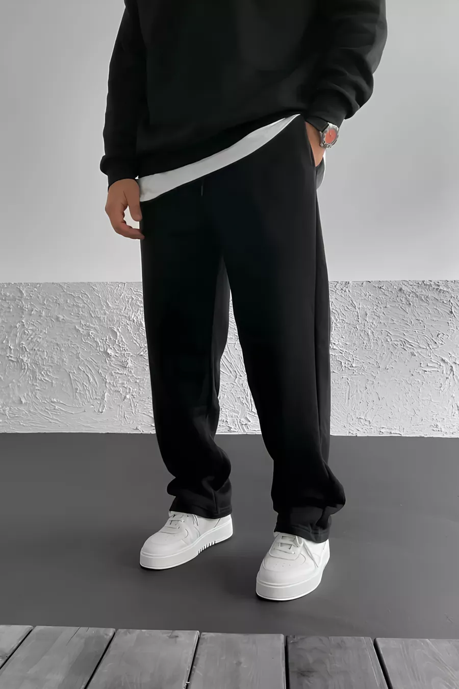 Мужские зимние штаны с начесом, свободного кроя, прямые, черные, модель