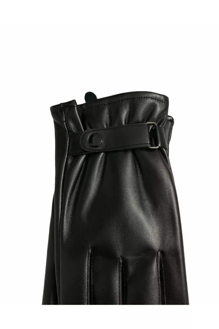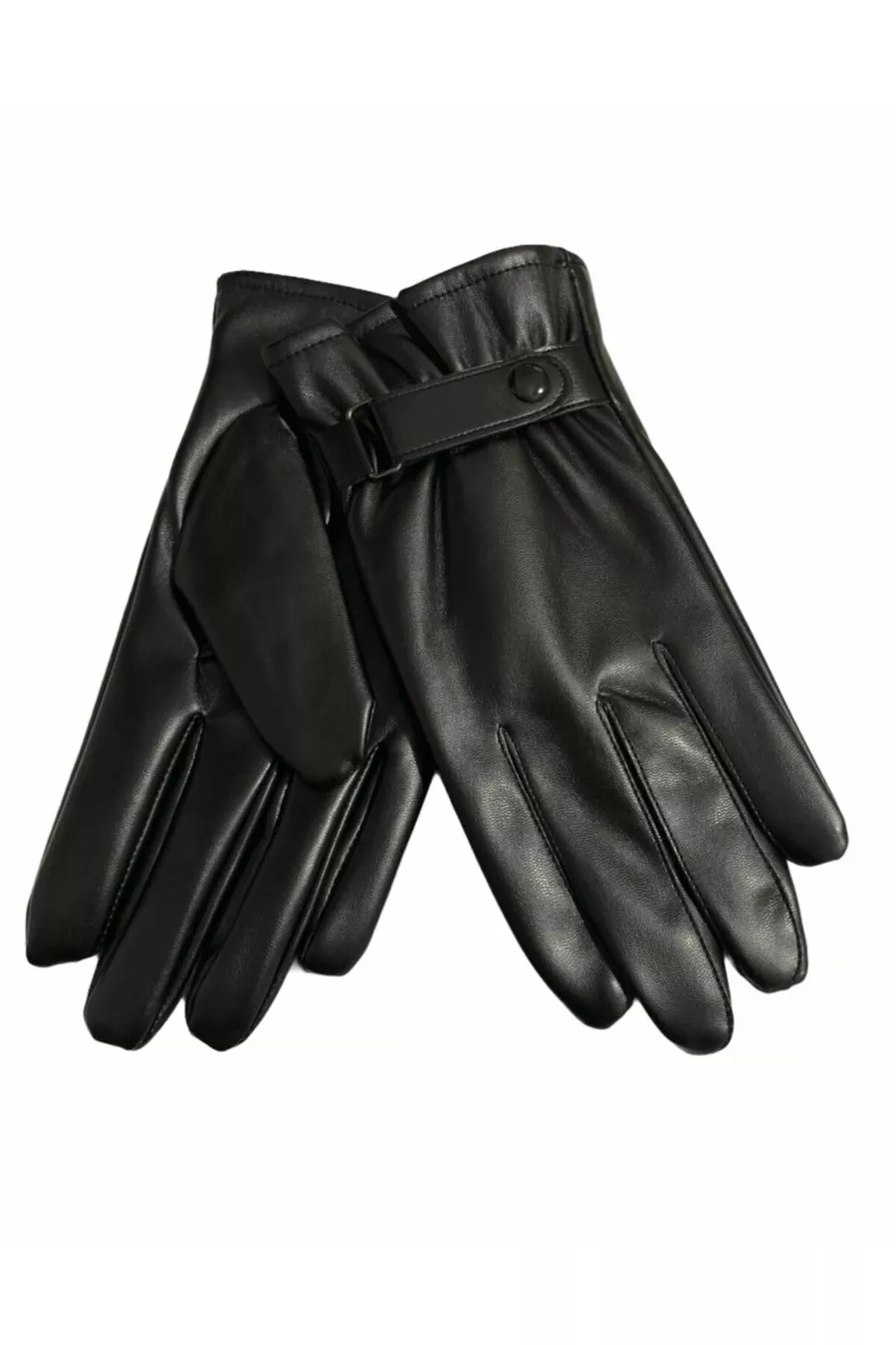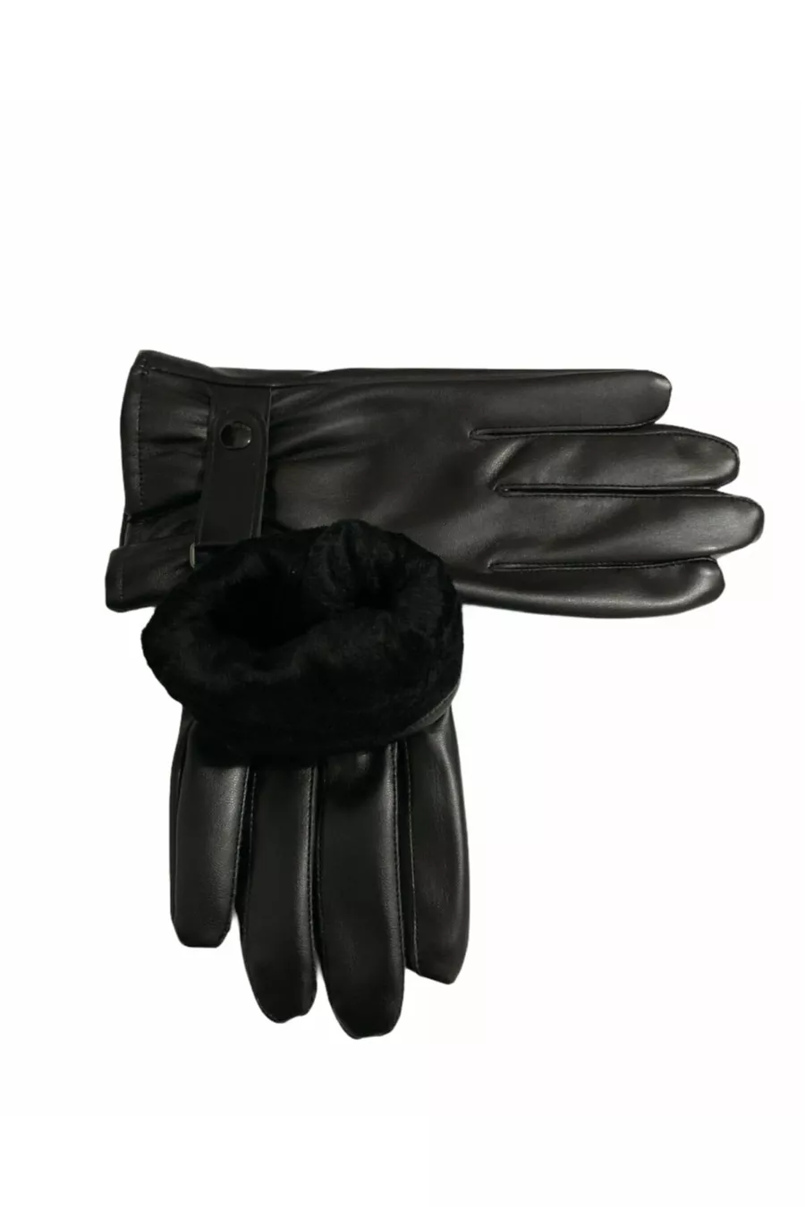 Мужские кожаные перчатки с искусственным мехом и кнопками
