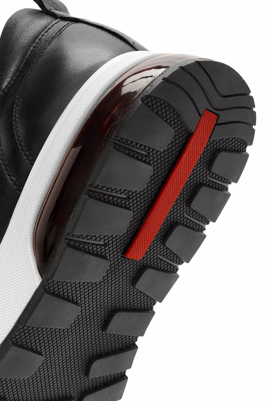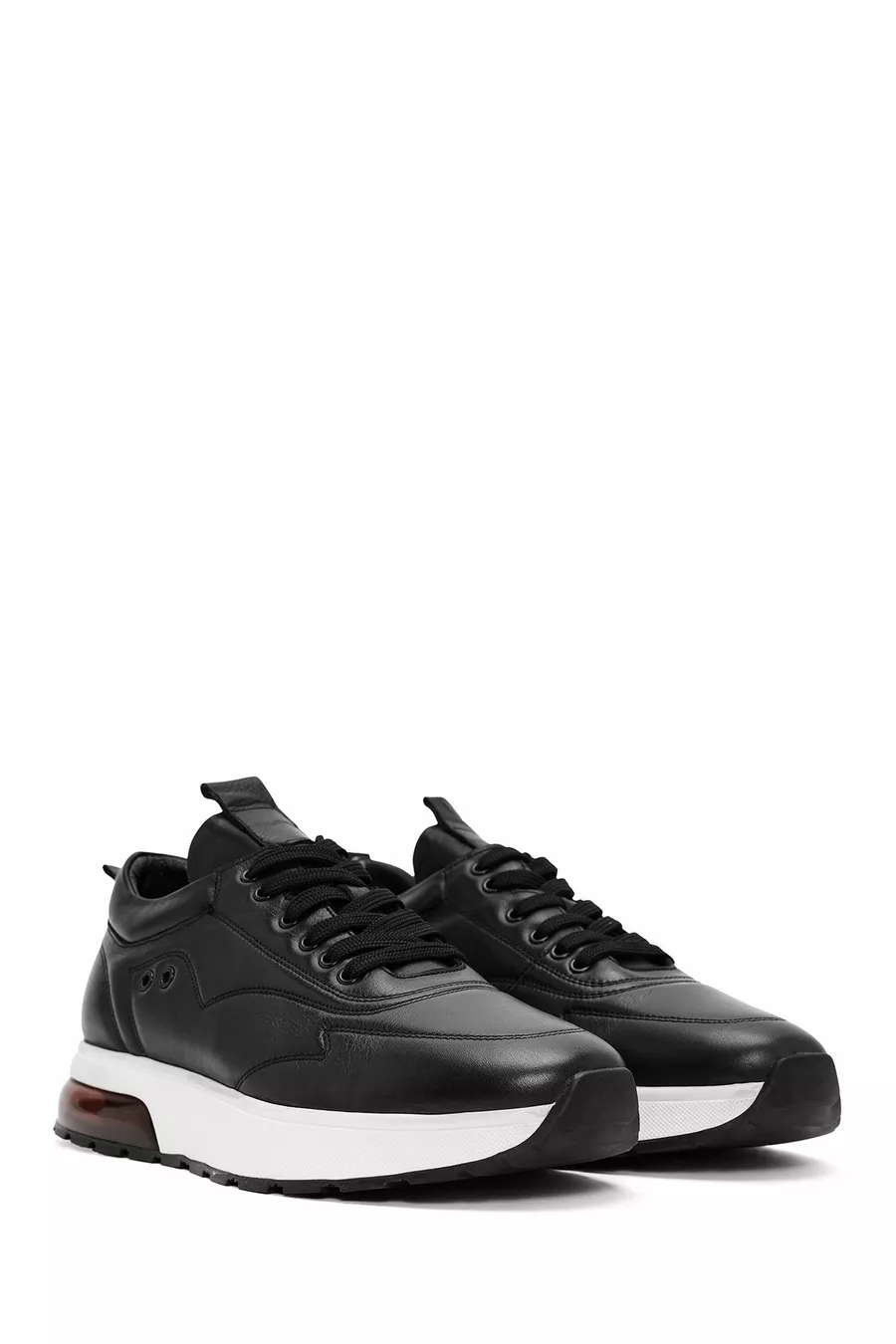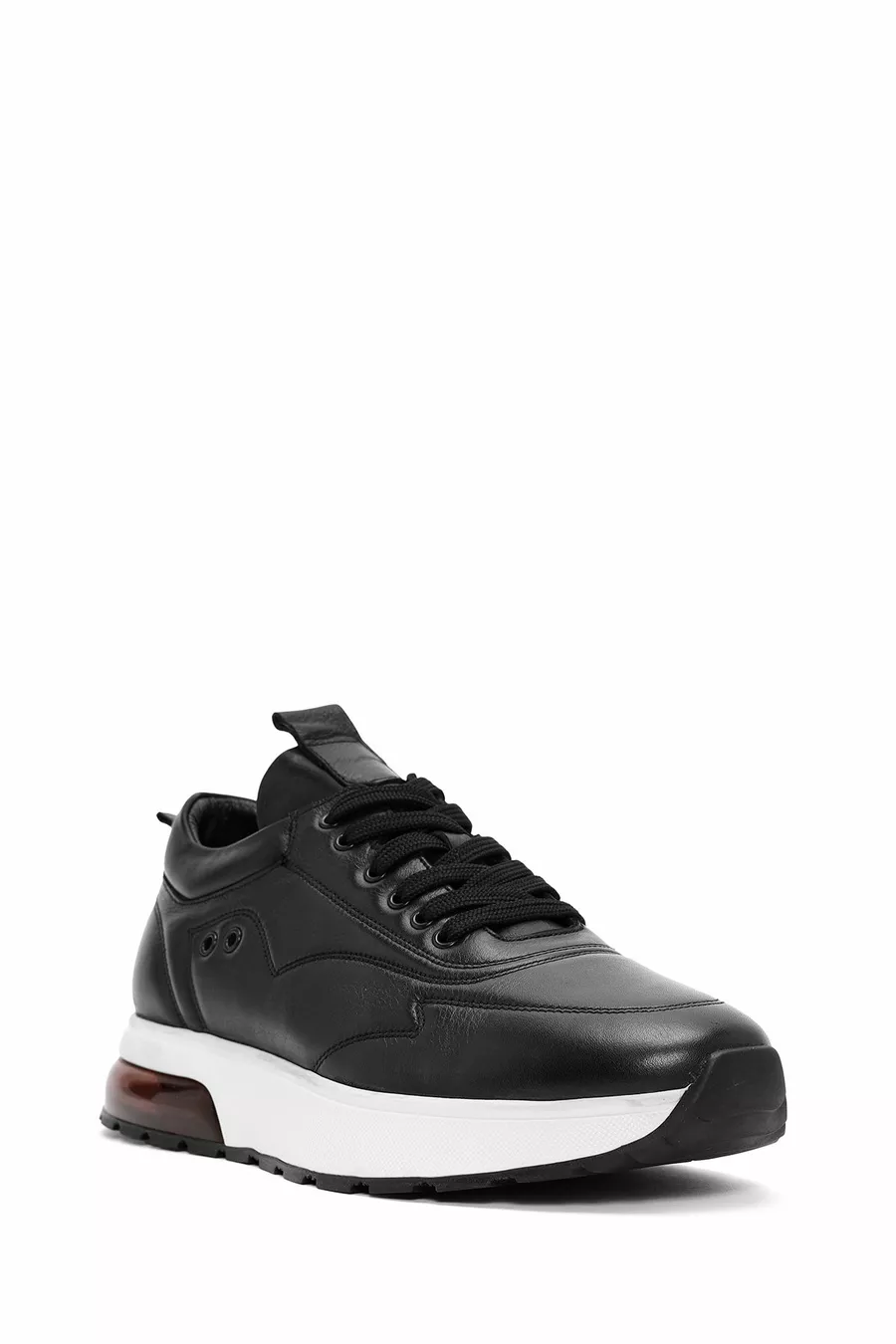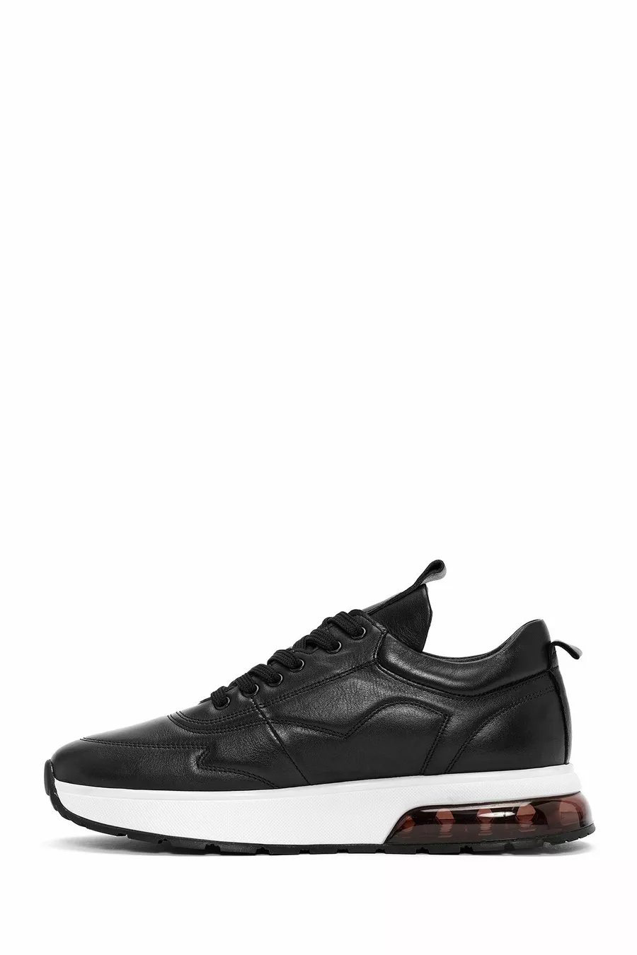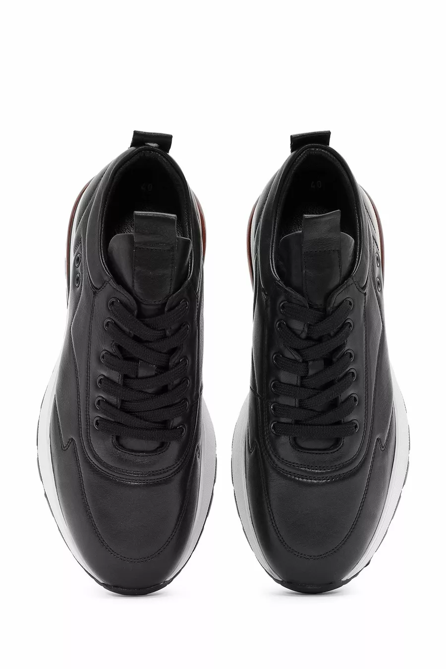 Мужские черные кожаные кроссовки на толстой подошве на шнуровке