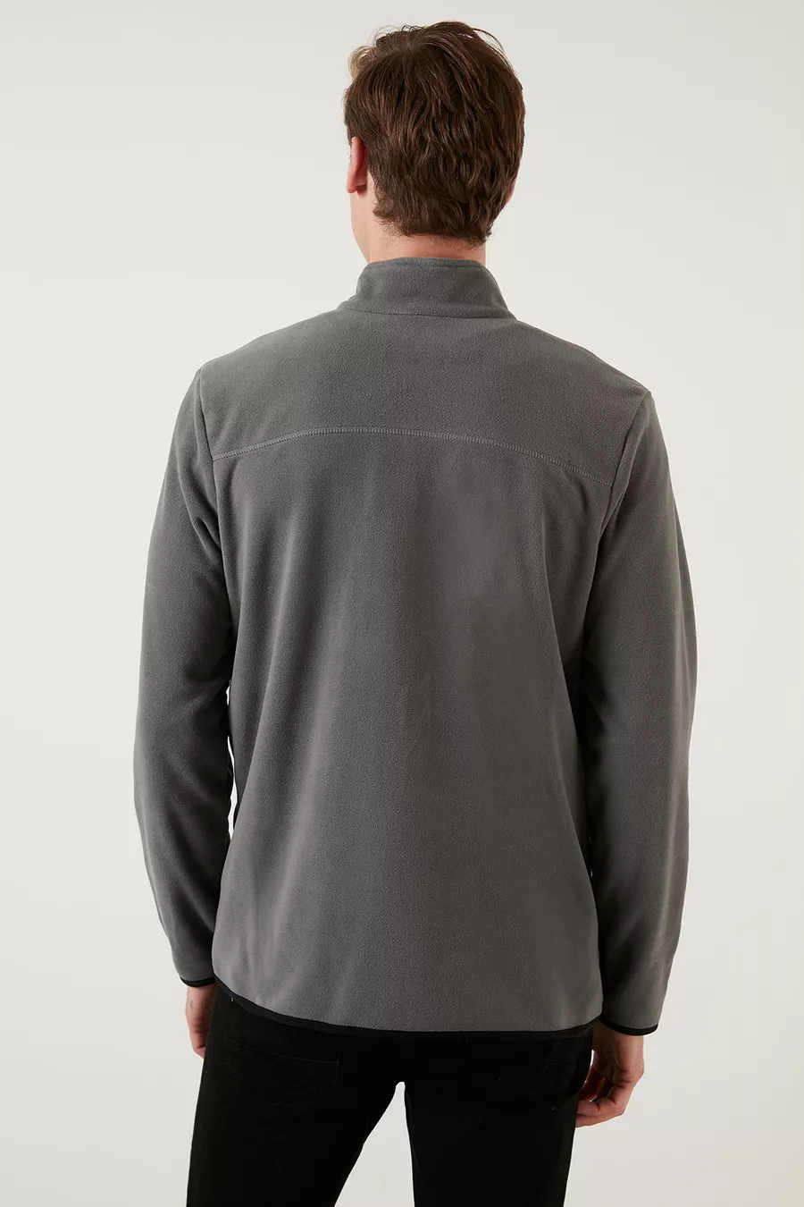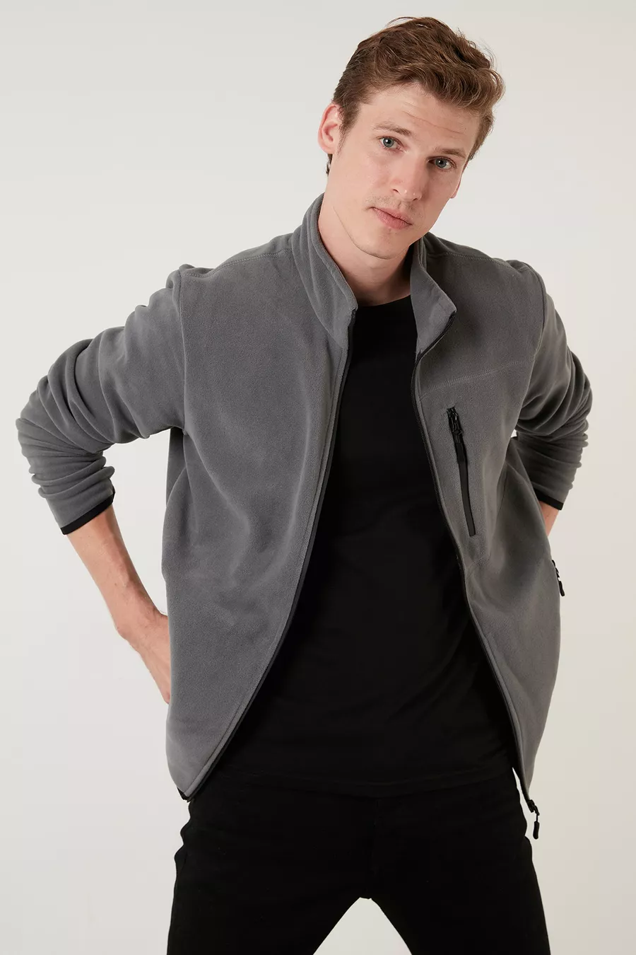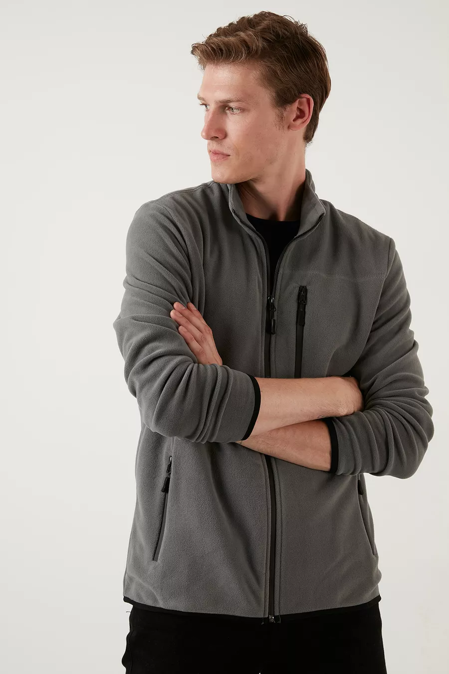 Мужской флисовый кардиган с молнией и карманами, узкий крой, стоячий воротник