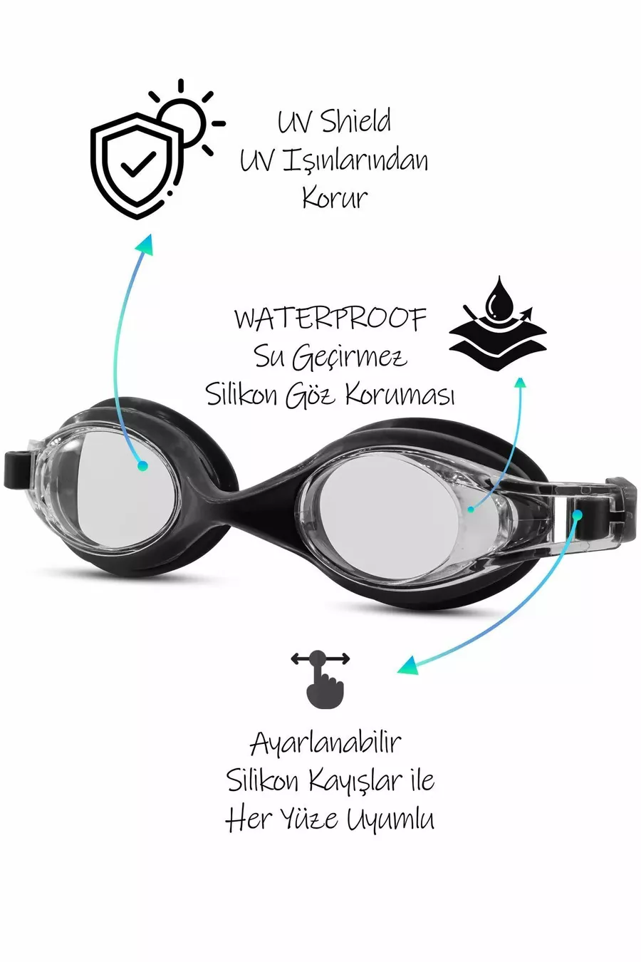 Набор для плавания из 5 предметов – очки с чехлом + шапочка + затычки для ушей и носа