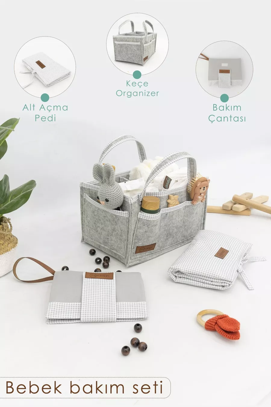 Набор для ухода за ребенком из 3 предметов: войлочный органайзер для мамы и малыша, водонепроницаемая пеленка, сумка для пеленания, серый