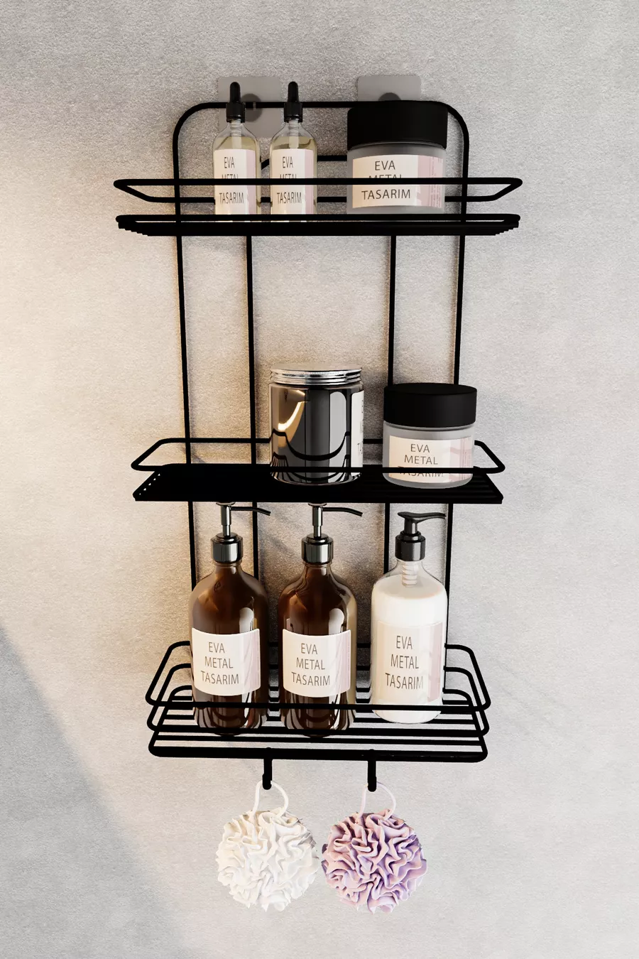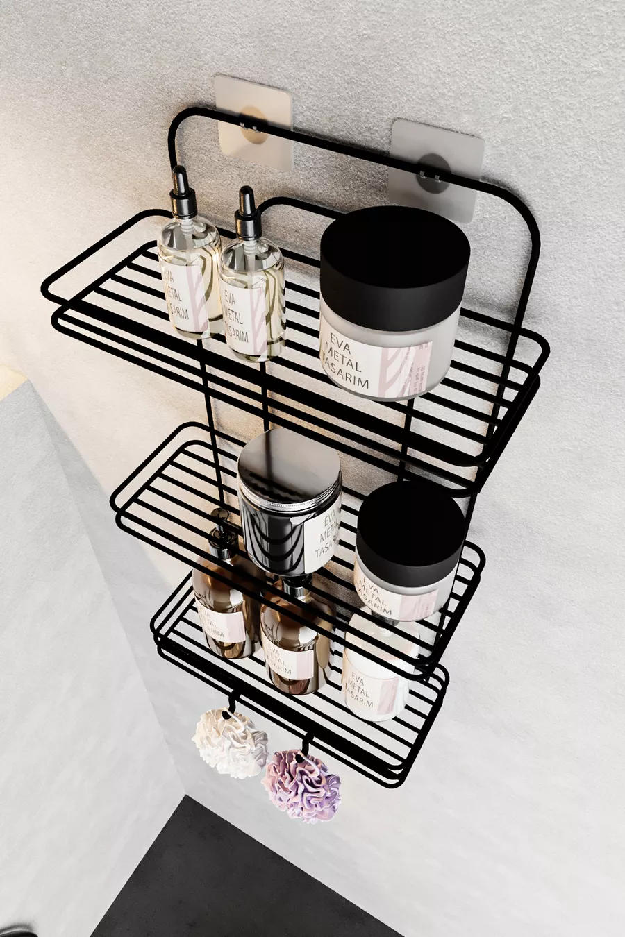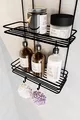 Набор из 2 черных настенных ванночных органайзеров с липкой основой, безржавеющие, с держателем для шампуня и крючками для мочалок