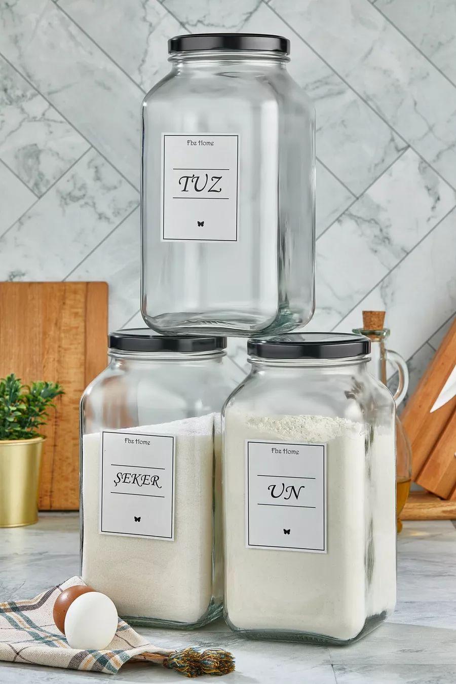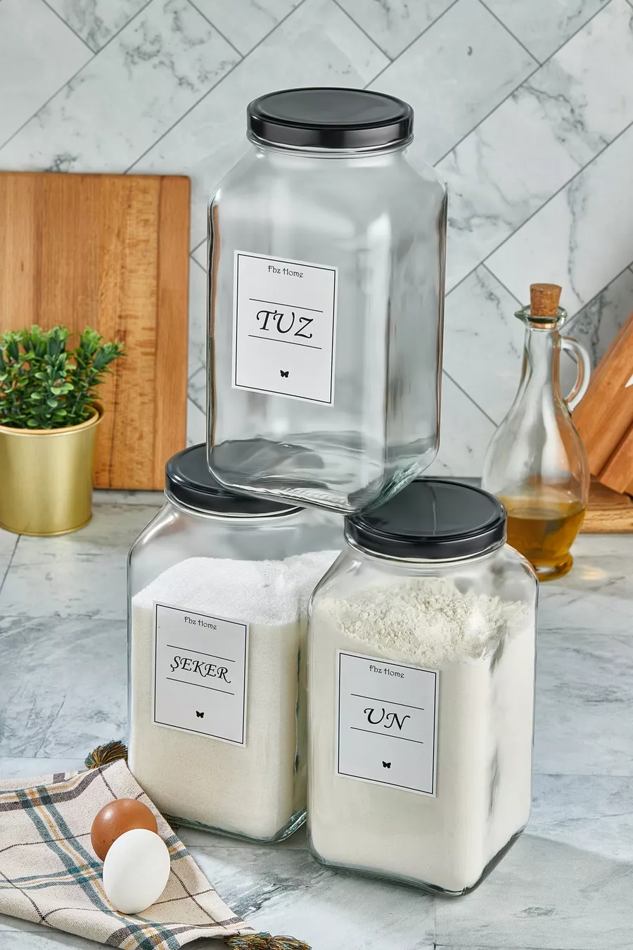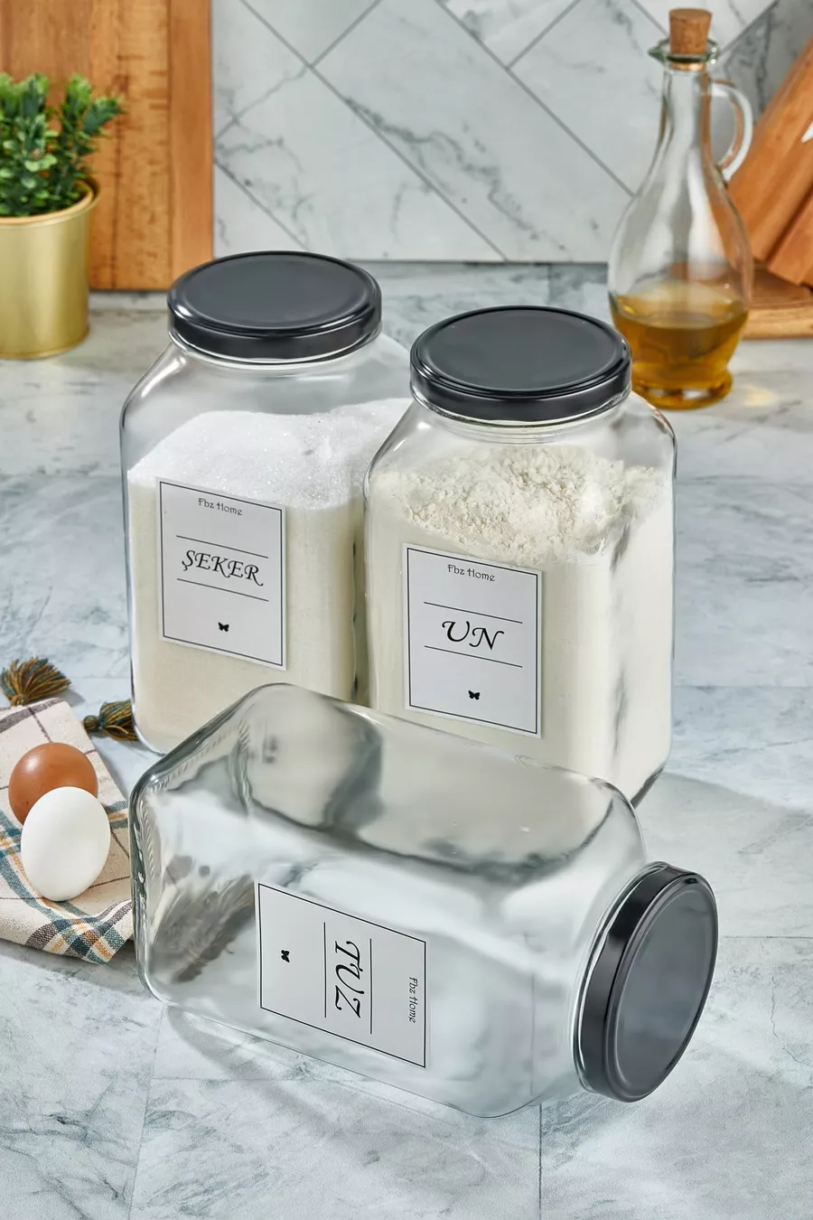Набор из 3 декоративных кухонных органайзеров для соли, сахара и муки, стеклянные банки для хранения продуктов ( мл)