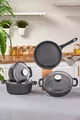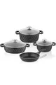 Цвет: Черный Размер: 26 см Объем: 2,3 л Особенности: Антипригарное дно Внешний материал: Гранит Внутренний материал: Гранит Количество предметов: 7 Происхождение: Турция Материал: Сталь