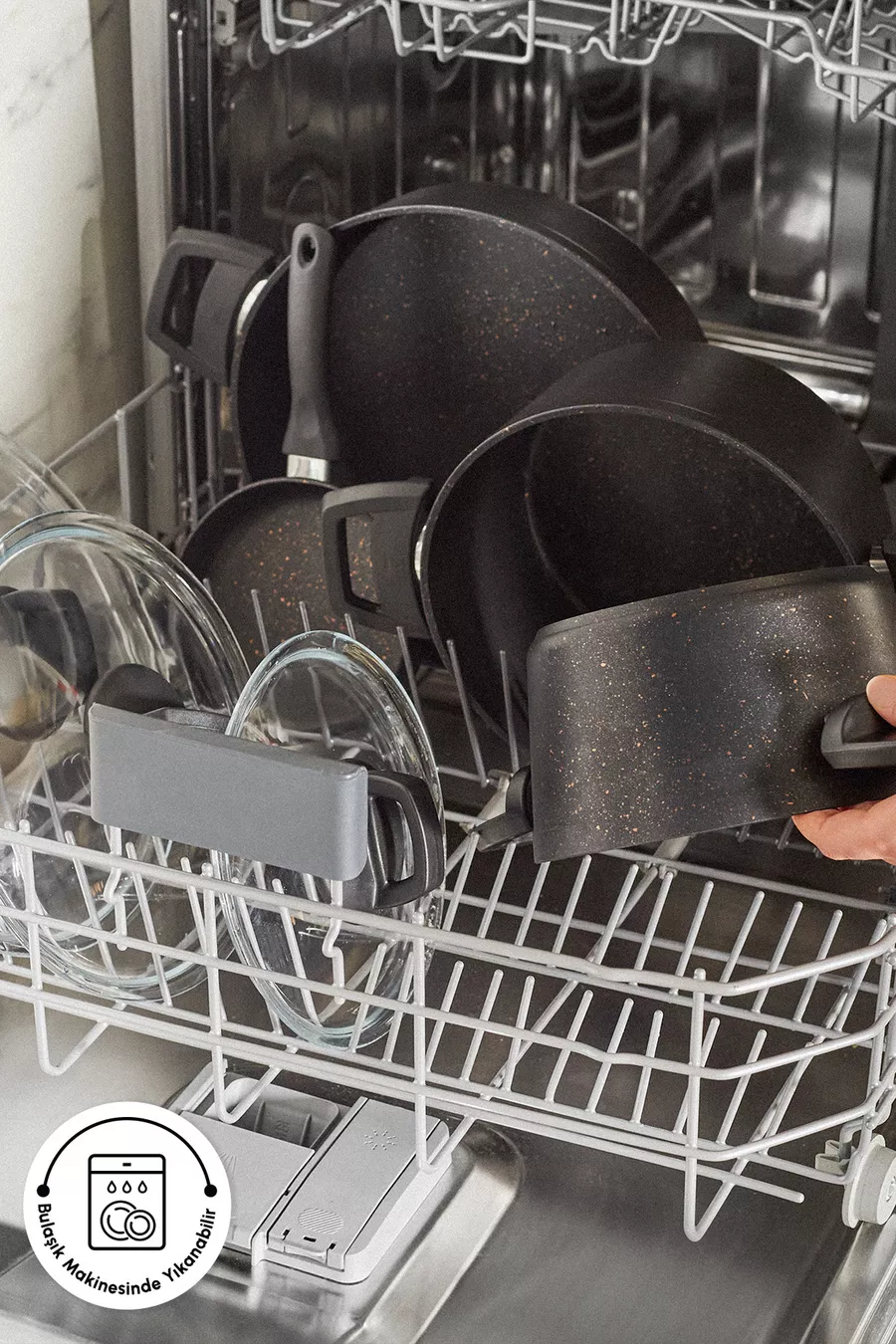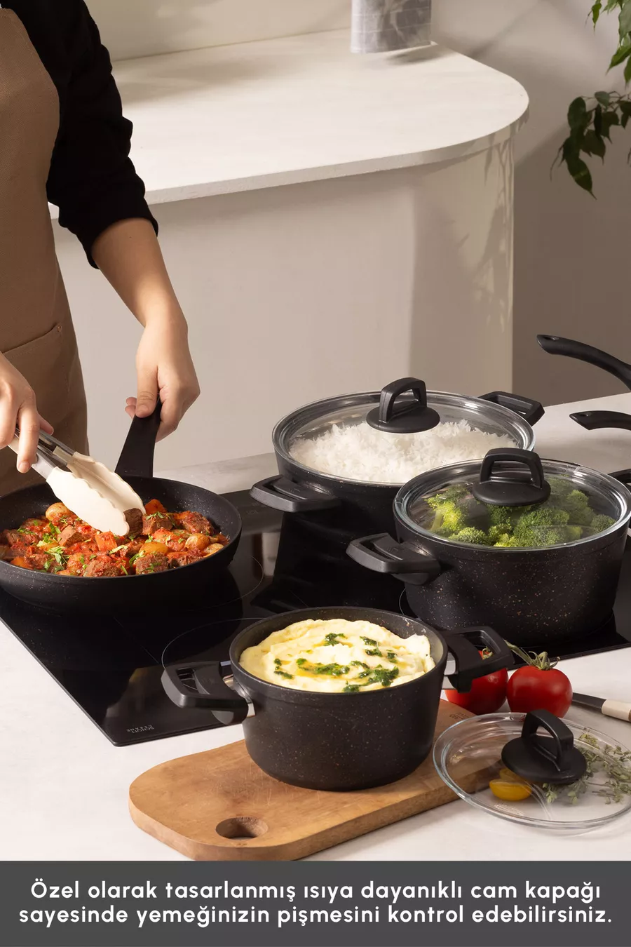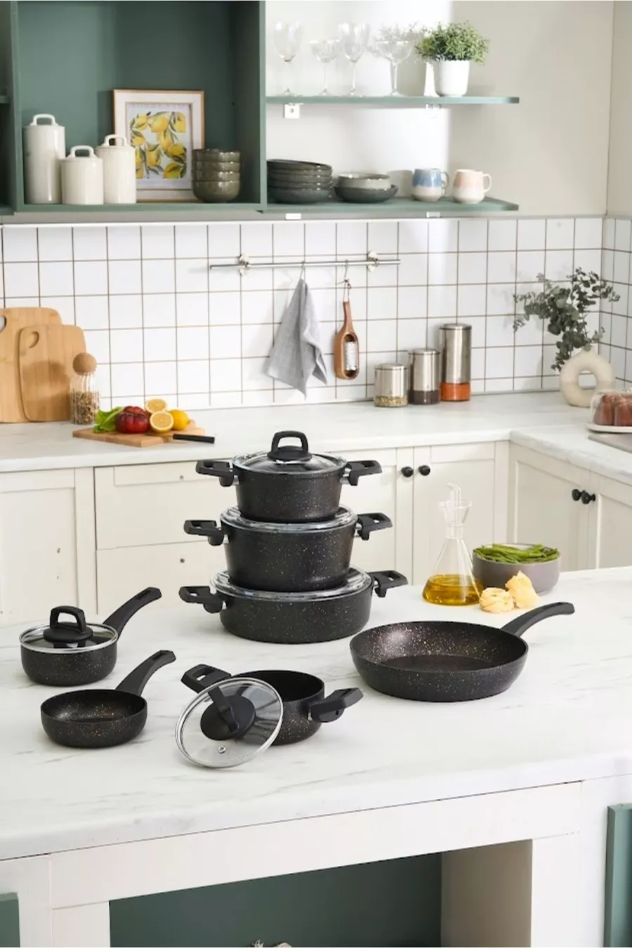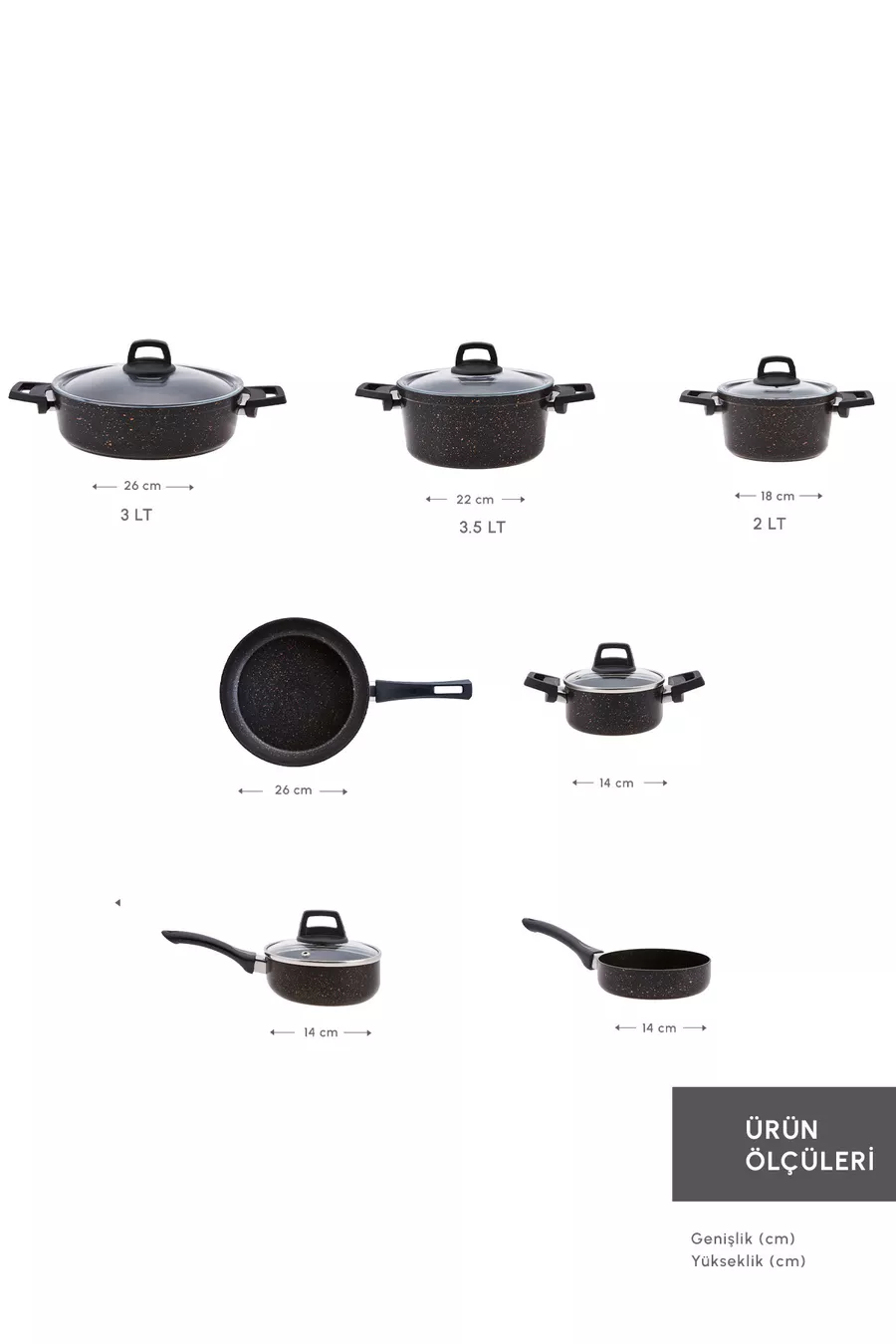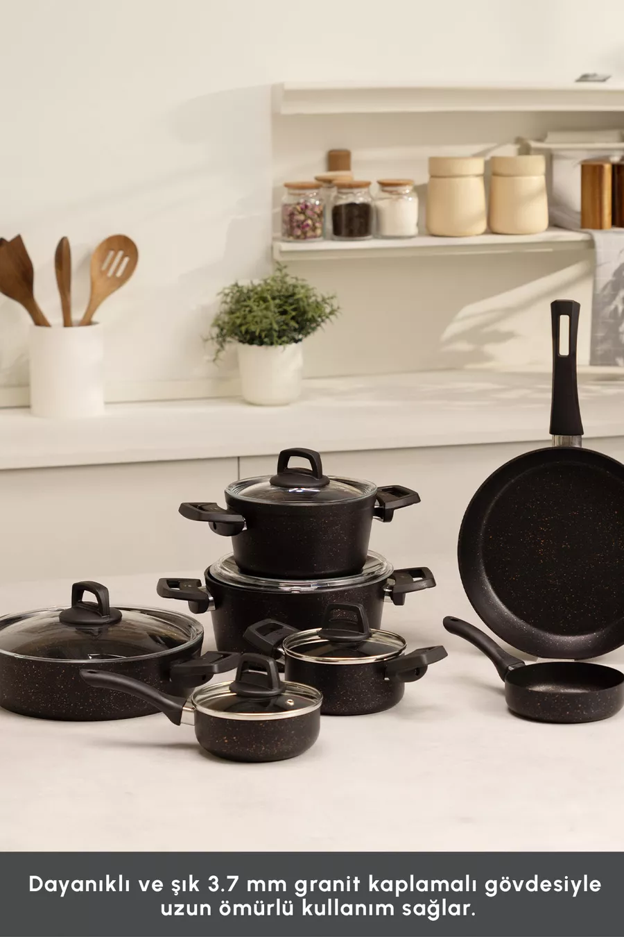 Цвет: Черный Особенности: Неприлипающее дно Внешний материал: Гранит Внутренний материал: Гранит Количество частей: 12 Страна производства: Турция Материал: Гранит