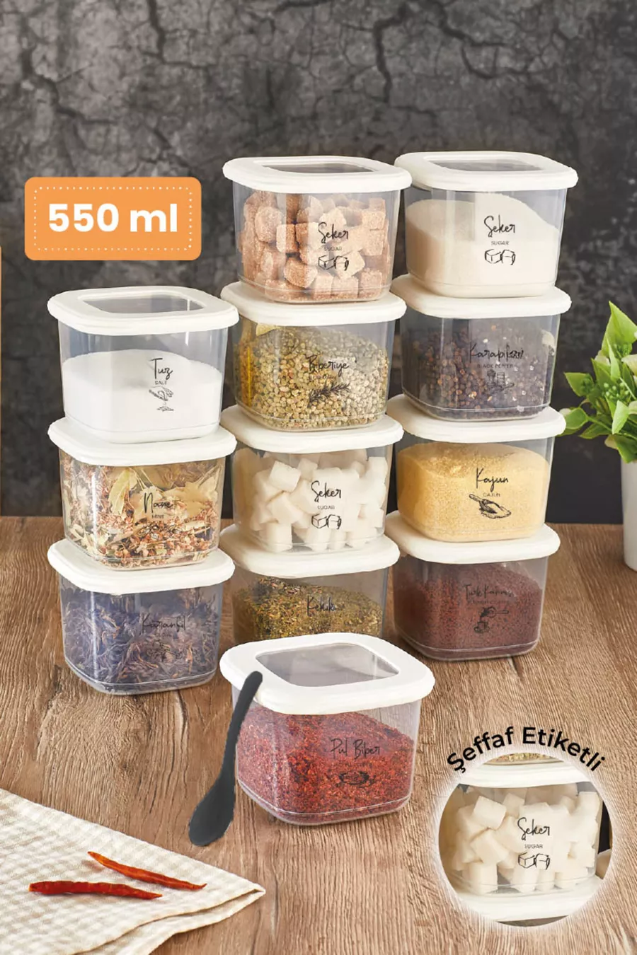 Набор маленьких контейнеров для хранения продуктов с ложкой, черная трафаретная этикетка, 0 литров, белый