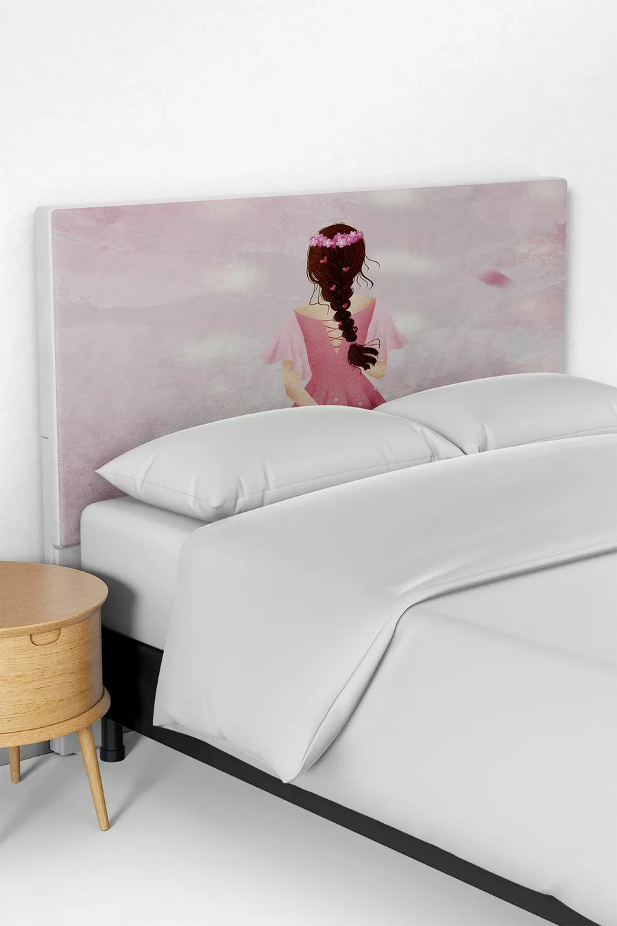 Наволочка для изголовья кровати детской комнаты с девочкой, держащей цветок