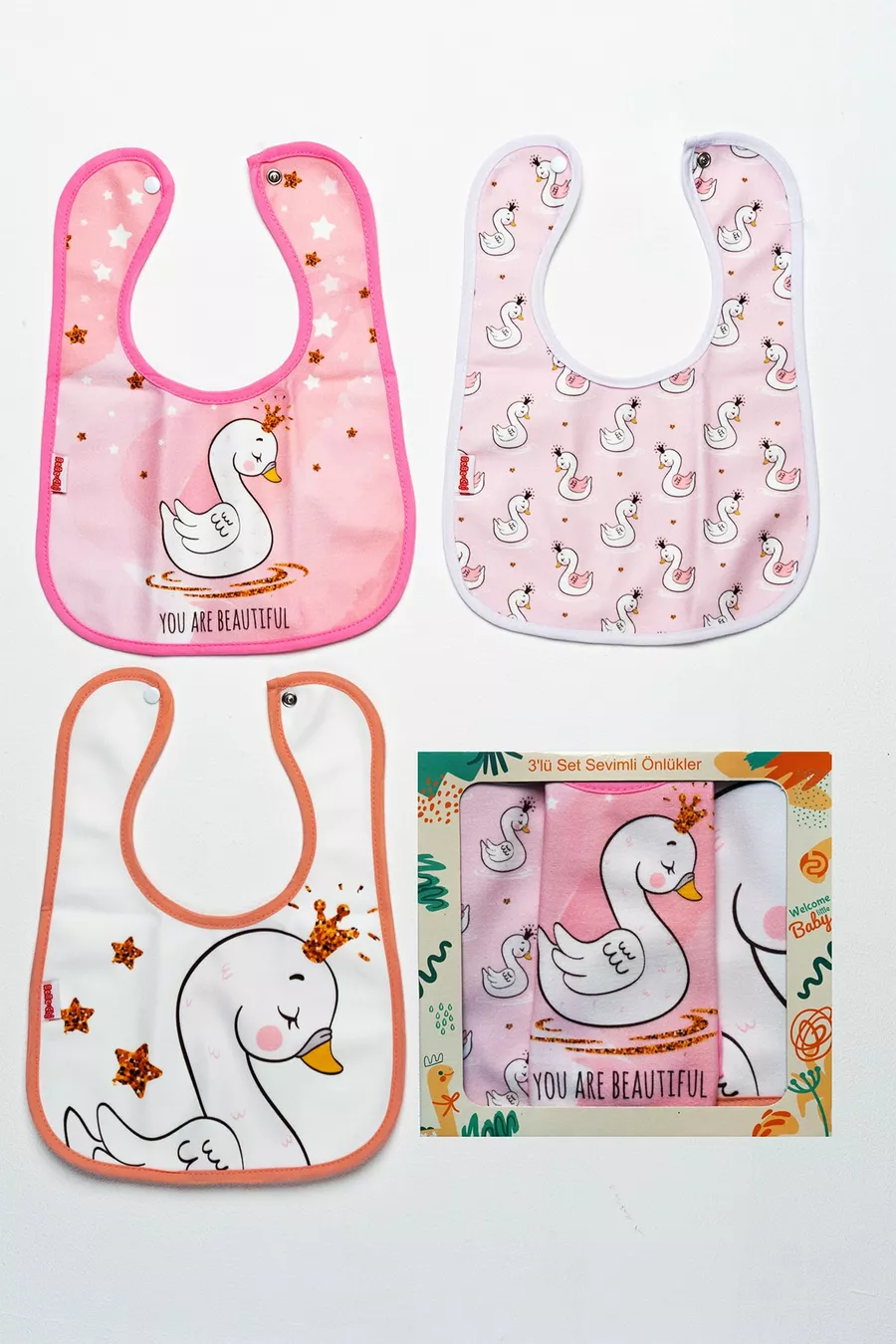 Нагрудник для кормления из микрофибры с лебединым мотивом, квадратный, 3 части, в собственной коробке, водонепроницаемый с кнопками