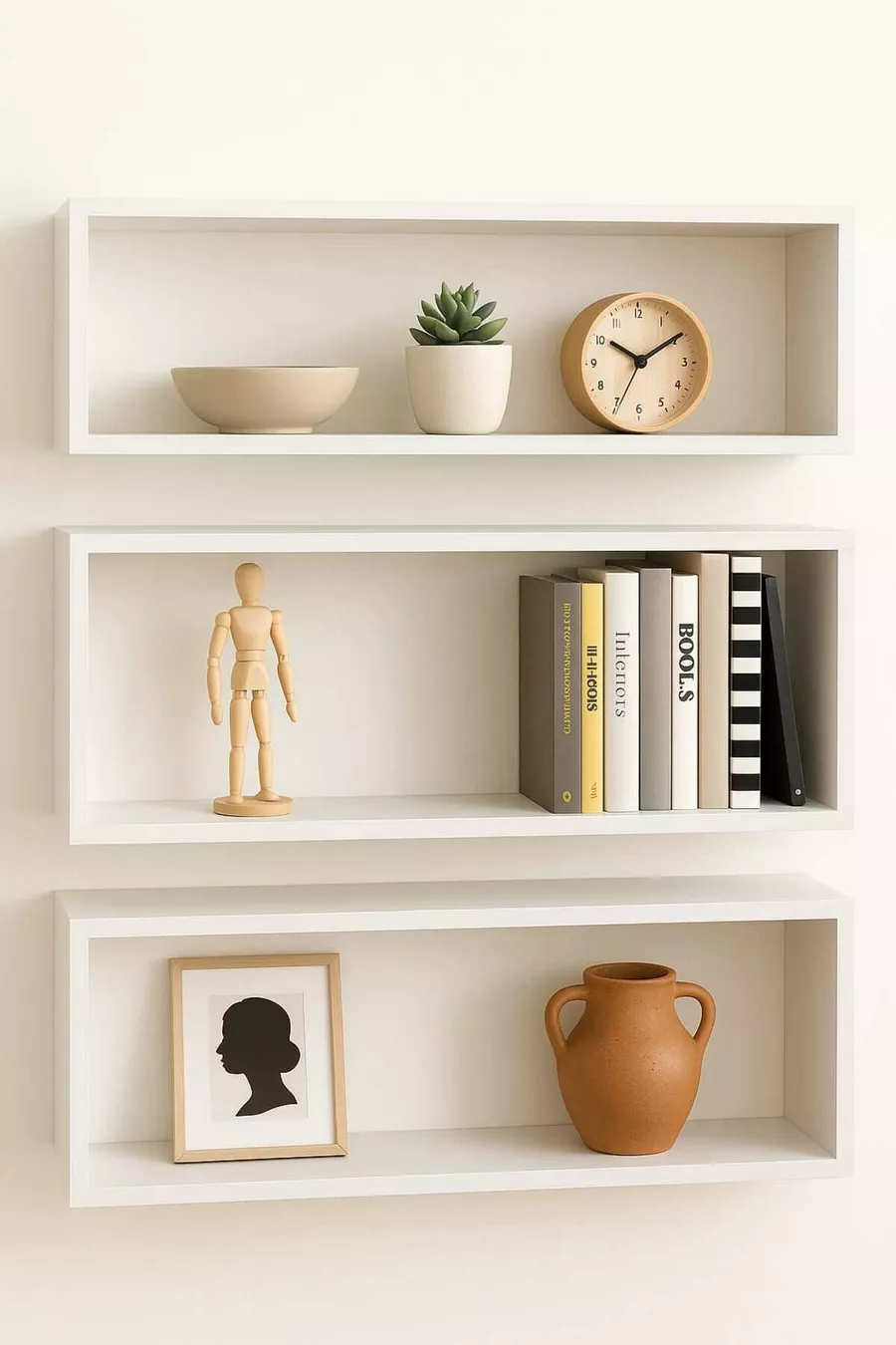 Совет: Настенный монтаж Материал: Ламинированная ДСП Цвет: Белый Высота: 25 см Ширина: 50 см Глубина: 15 см Количество полок: 3 Материал корпуса: Ламинированная ДСП Стиль: Современный Тема/Стиль: Современный Происхождение: Турция Особенности: Другие