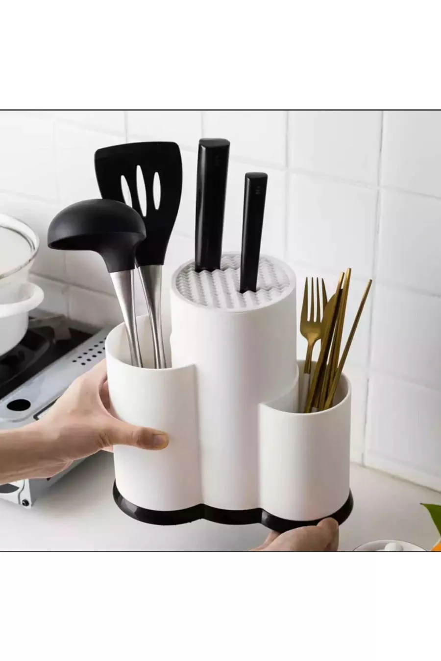 Настольный органайзер для вилок, ложек и ножей белый - многофункциональная сушилка для ножей
