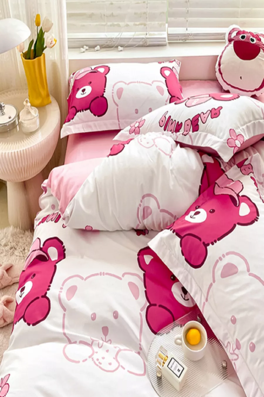 Простыня на резинке из натурального здорового хлопка с мишками Bear Panda, комплект детского постельного белья на одно спальное место