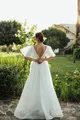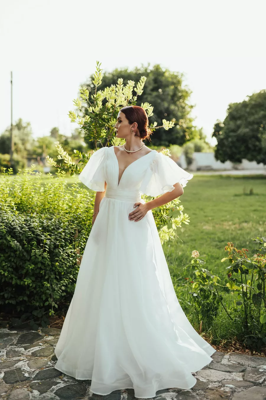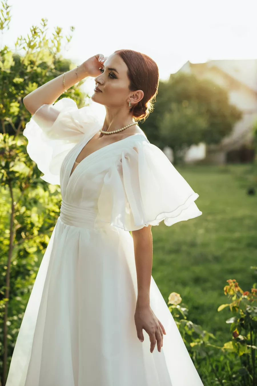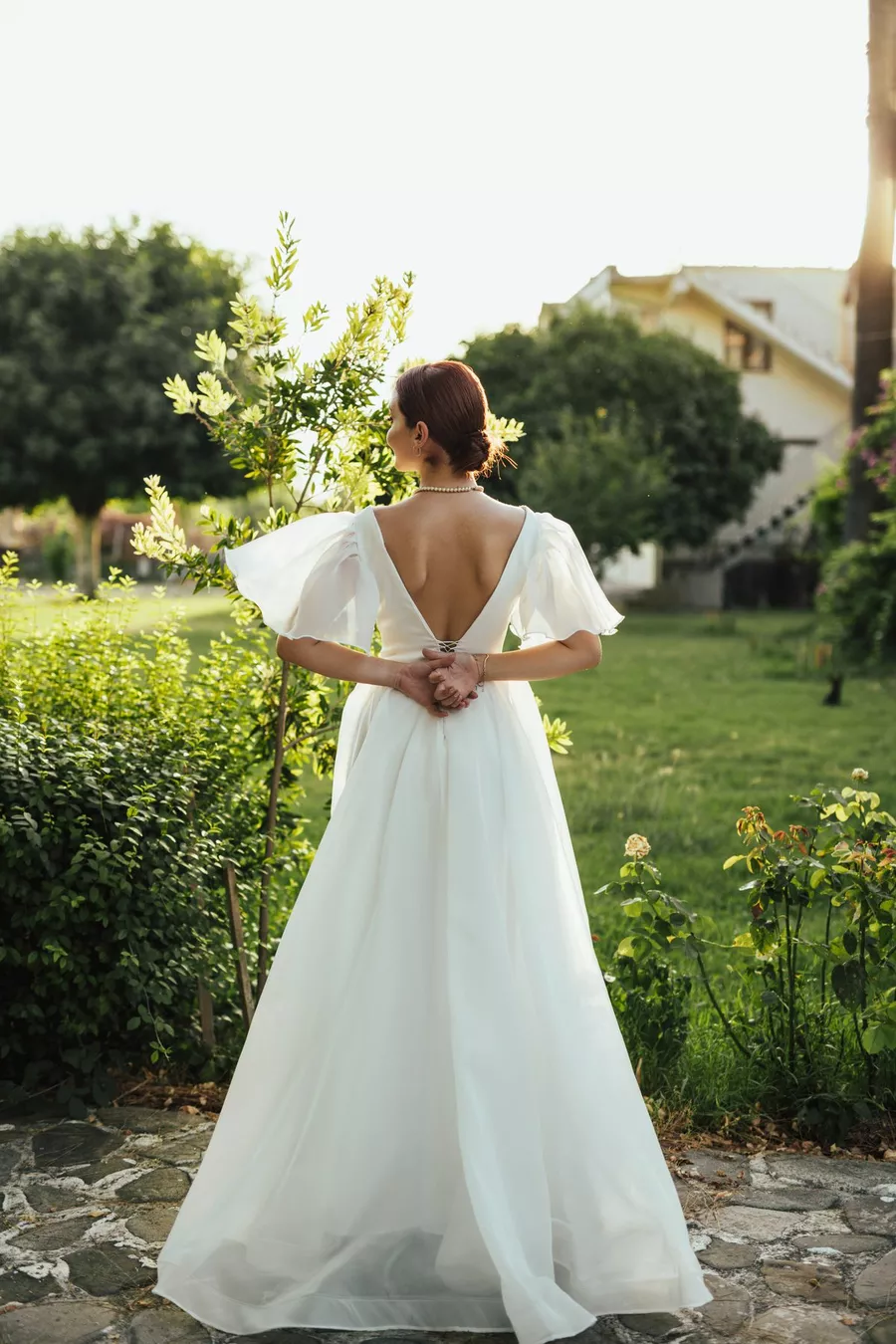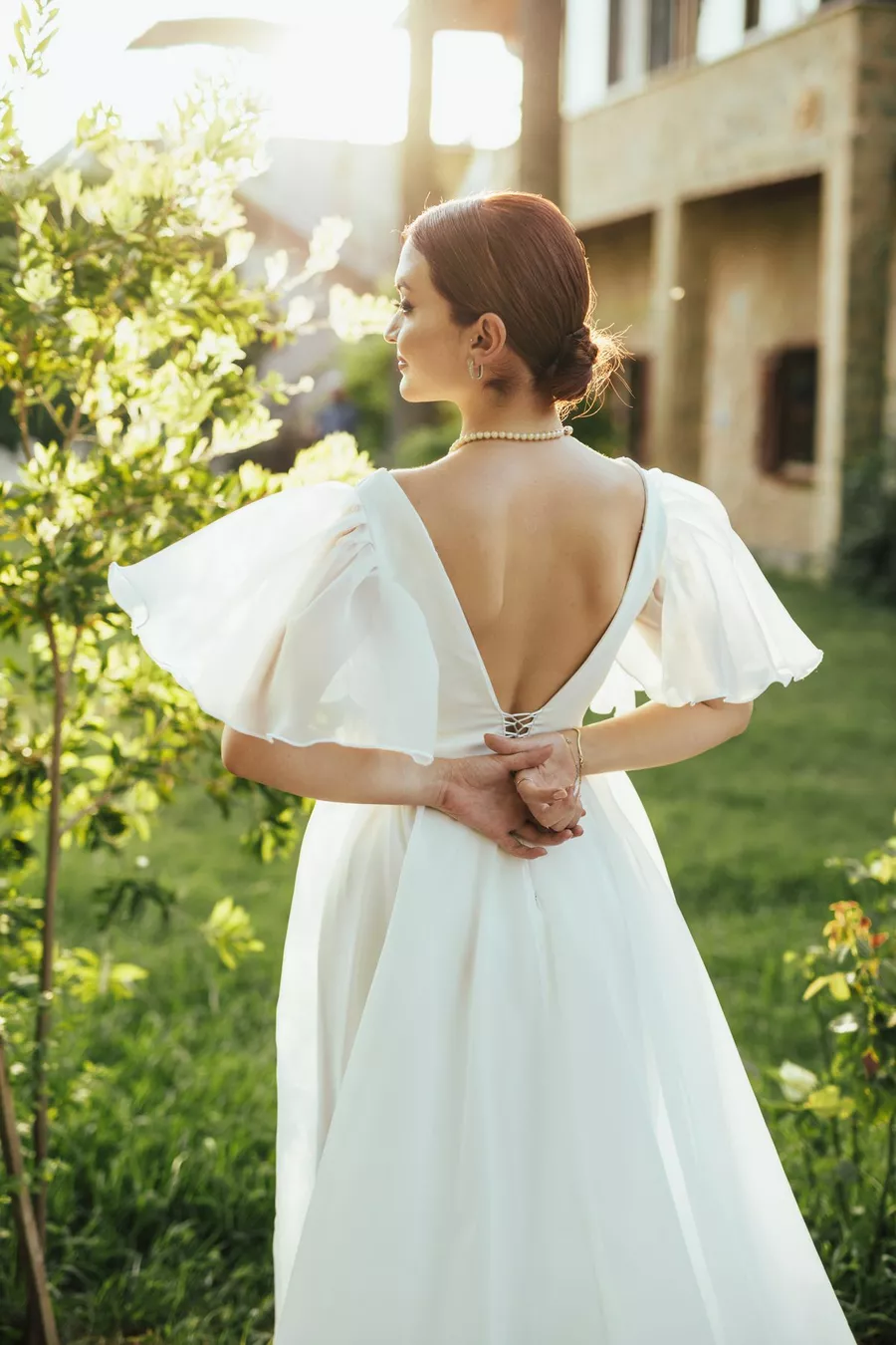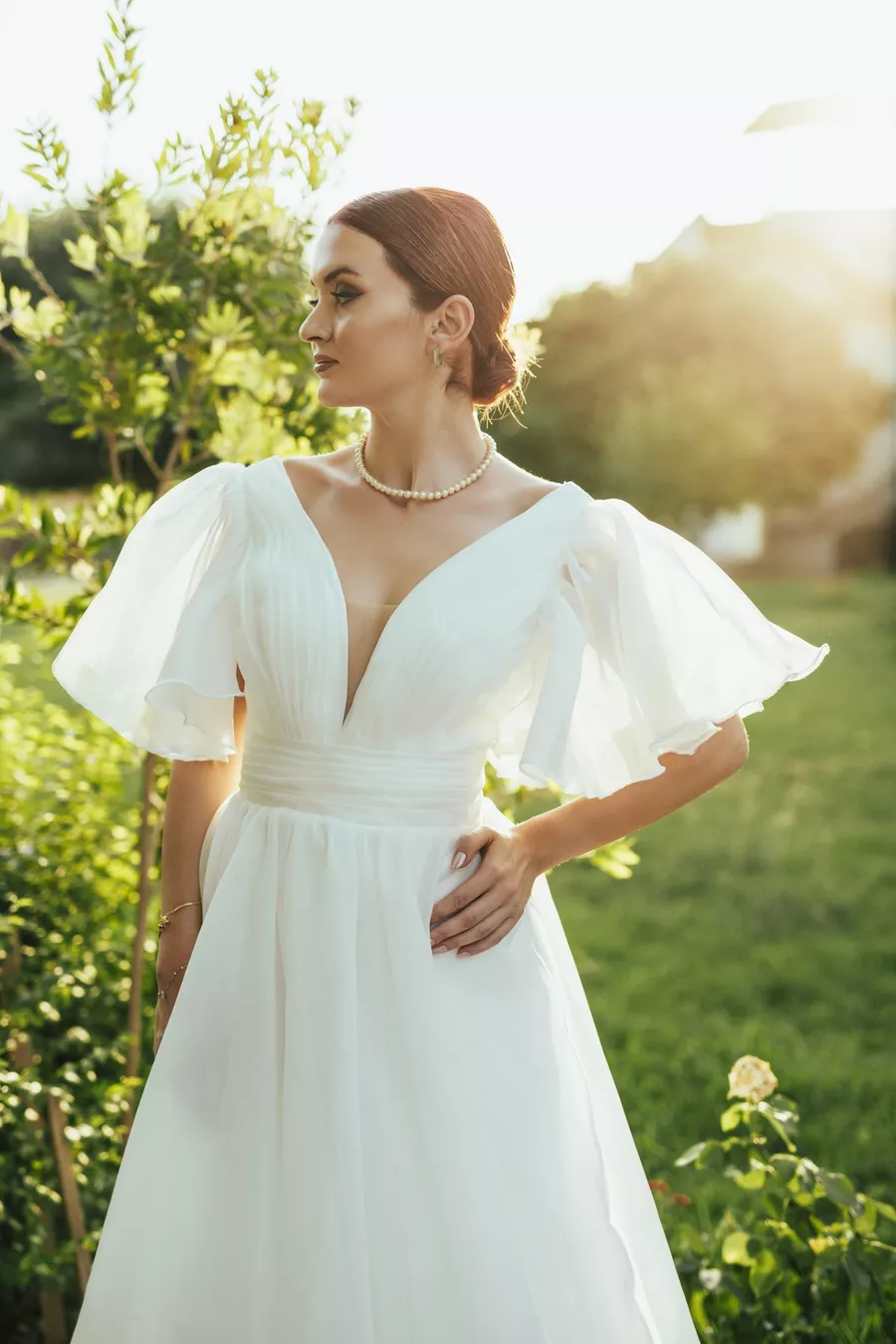 Свадебное платье Helios из атласа с V-образным вырезом и глубоким вырезом
