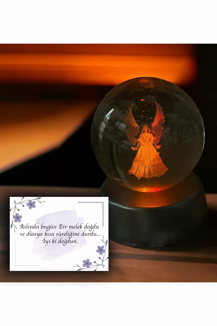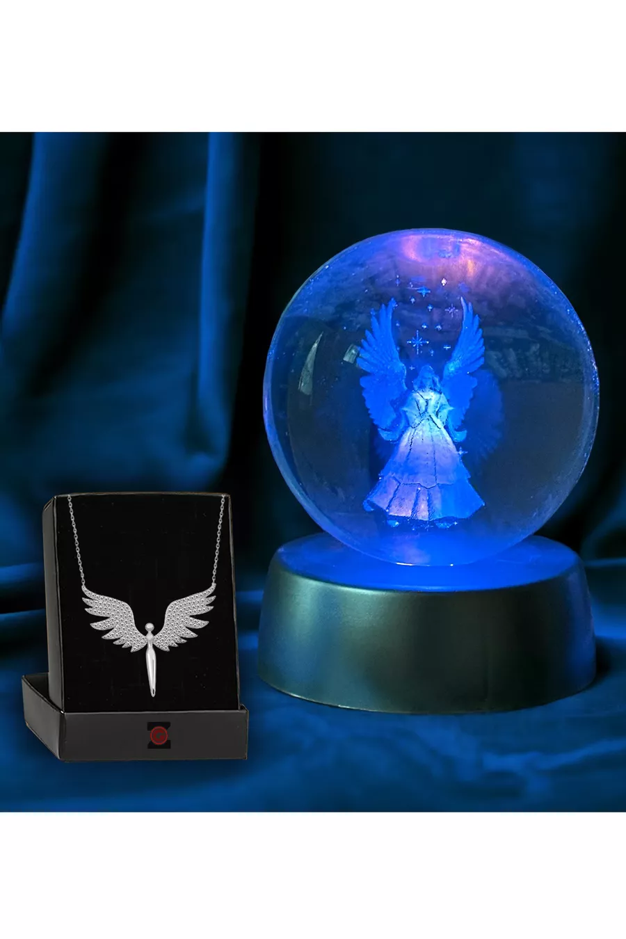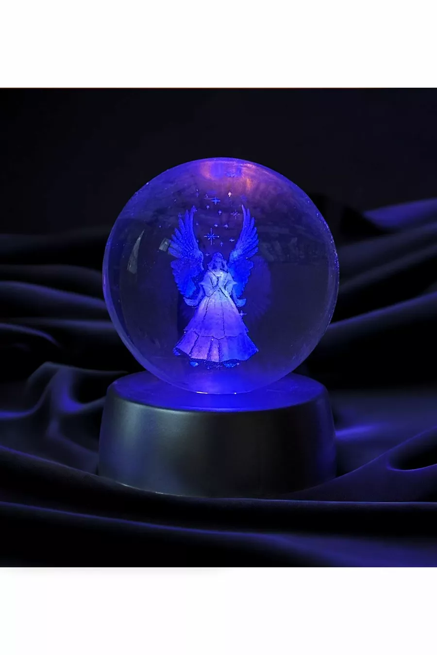 Светильник-стеклянный шар с ангелом и светодиодами, меняющими цвет, Луна, кристальный шар и серебряная подвеска с ангелом