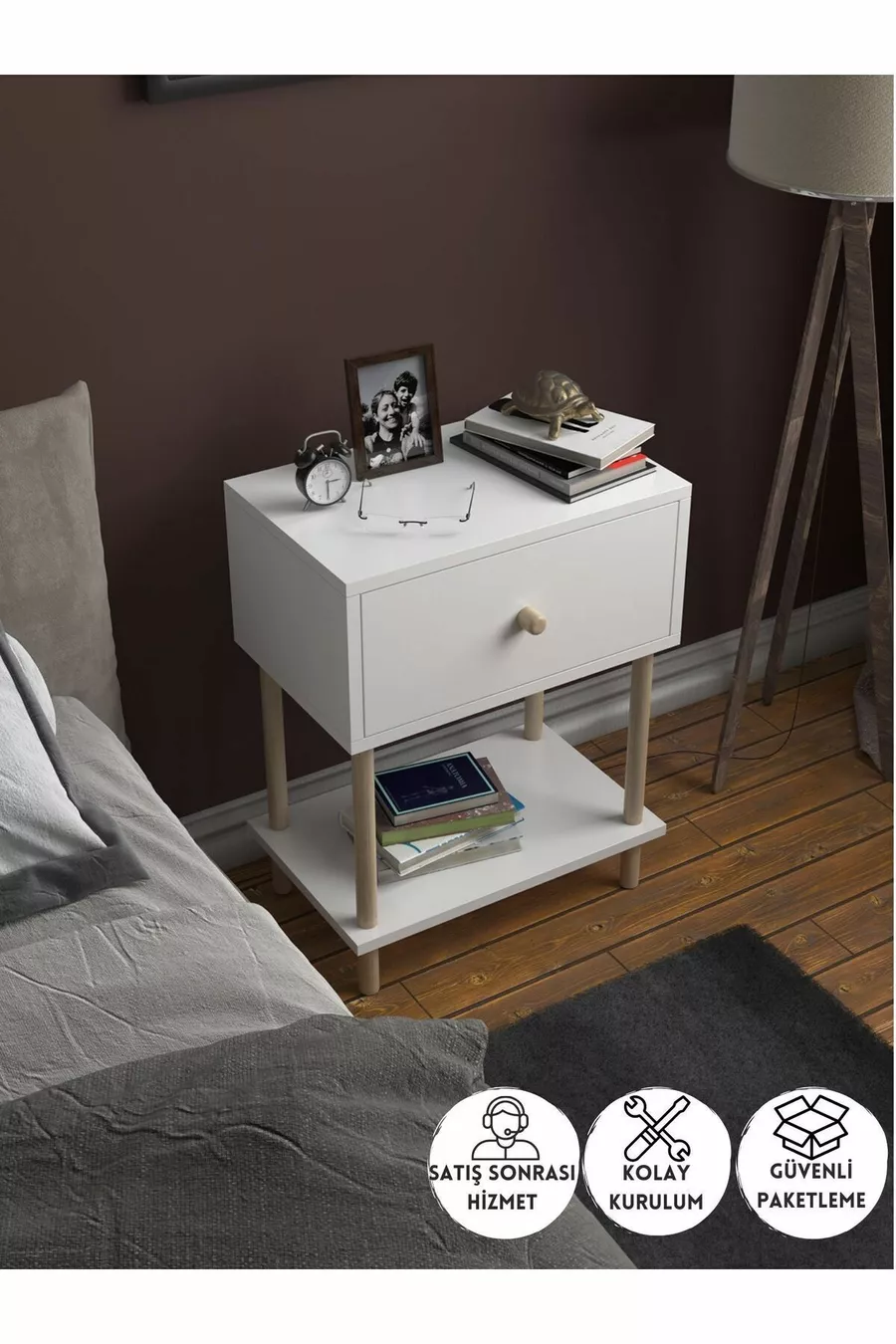 Материал: Ламинированная ДСП Цвет: Белый Гарантия: 2 года Количество ящиков: 1 Высота: 65 см Ширина: 50 см Глубина: 32 см Стиль: Классический Тема / Стиль: Современный Страна происхождения: Турция Особенности: На ножках