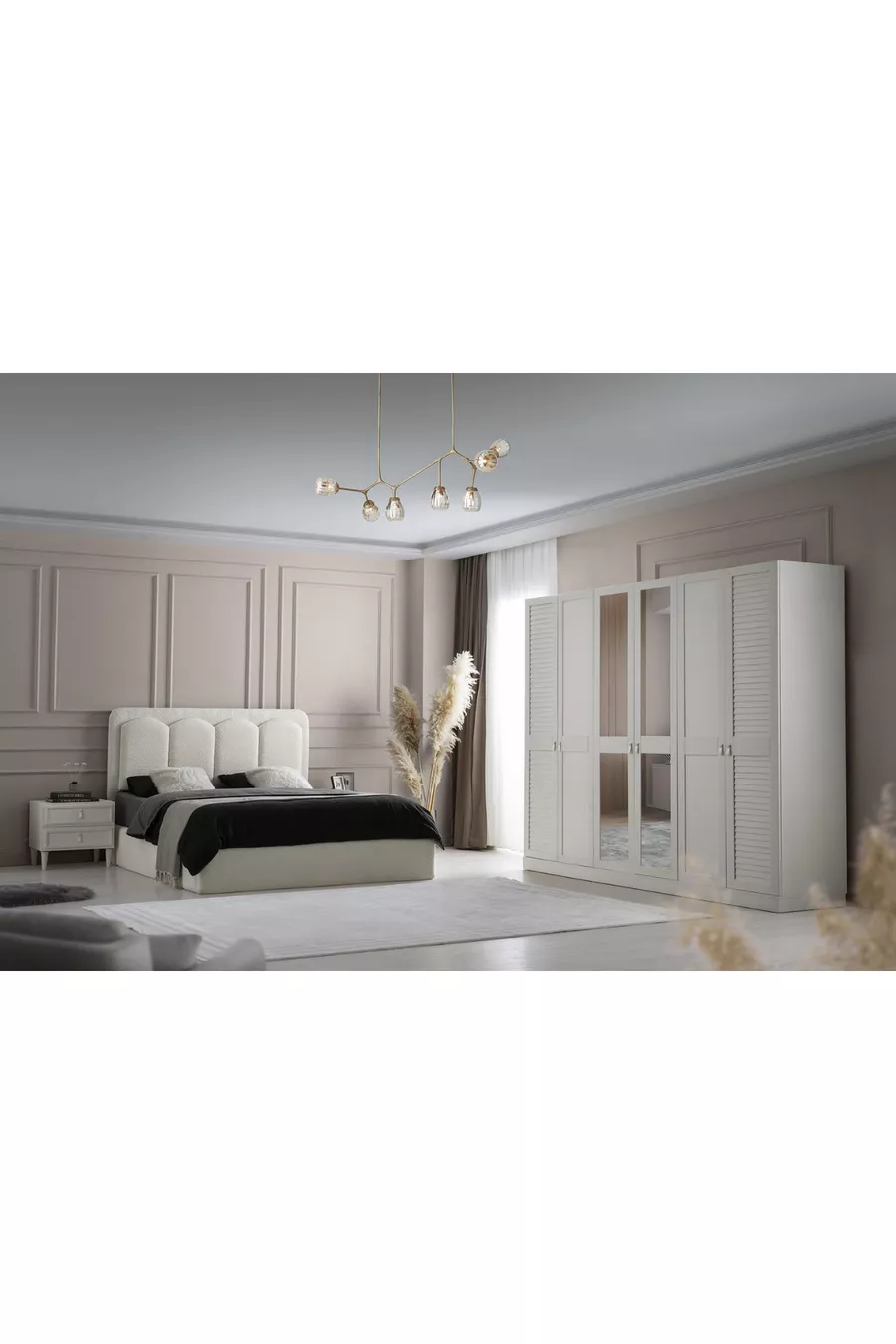 Цвет: Белый Срок гарантии: 2 года Размер кровати/основания: 150 x 200 Функция кровати: Без основания Функция шкафа: С дверцами Материал корпуса шкафа: Ламинированная ДСП Количество дверец: 6 Комплект включает: Шкаф + 2 прикроватные тумбочки + комод + изголовье кровати Стиль: Классический Тема / стиль: Классический Страна происхождения: Турция