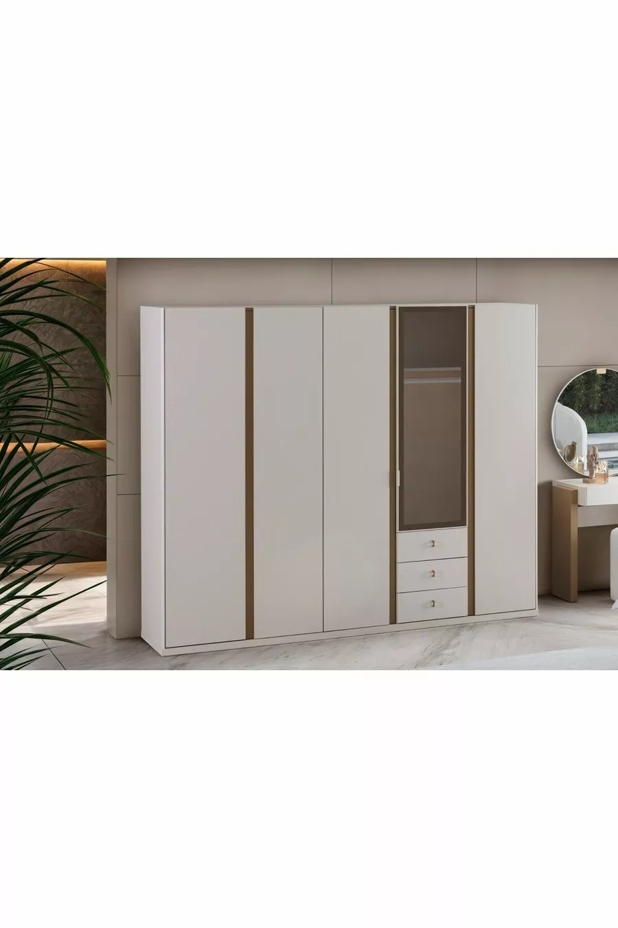 Цвет: Бежевый Гарантия: 2 года Размер кровати/основания: 160 x 200 Функция кровати: С основанием Функция шкафа: С зеркалом Материал корпуса шкафа: ДСП Количество дверей: 5 Комплектация: Кровать с основанием + 2 прикроватные тумбочки + комод + шкаф Стиль: Современный Тема / стиль: Современный Страна происхождения: Турция