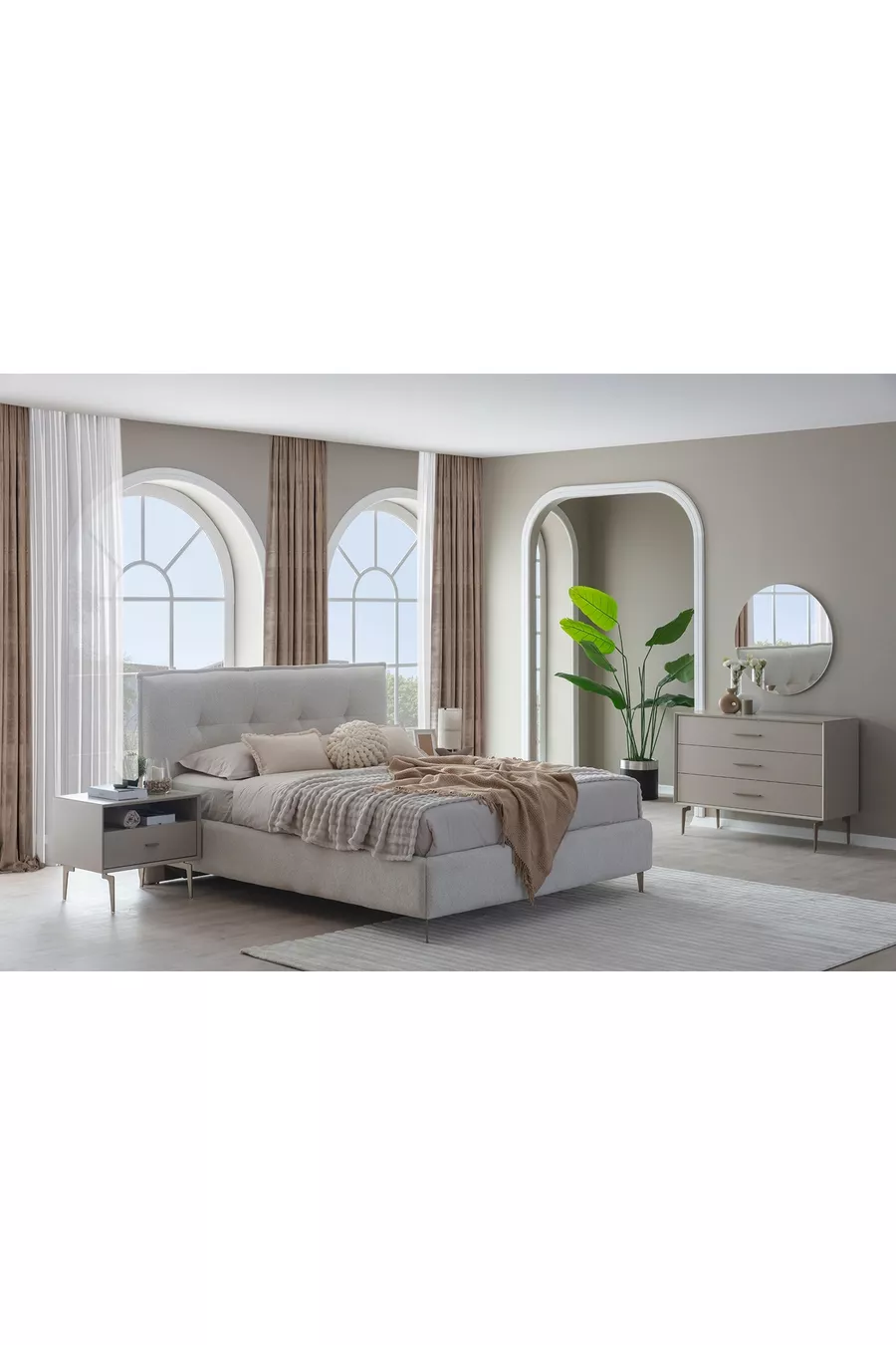 Состав комплекта: Кровать + 2 прикроватные тумбочки + комод + шкаф