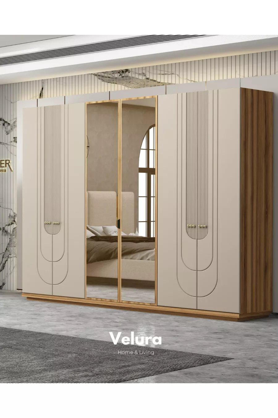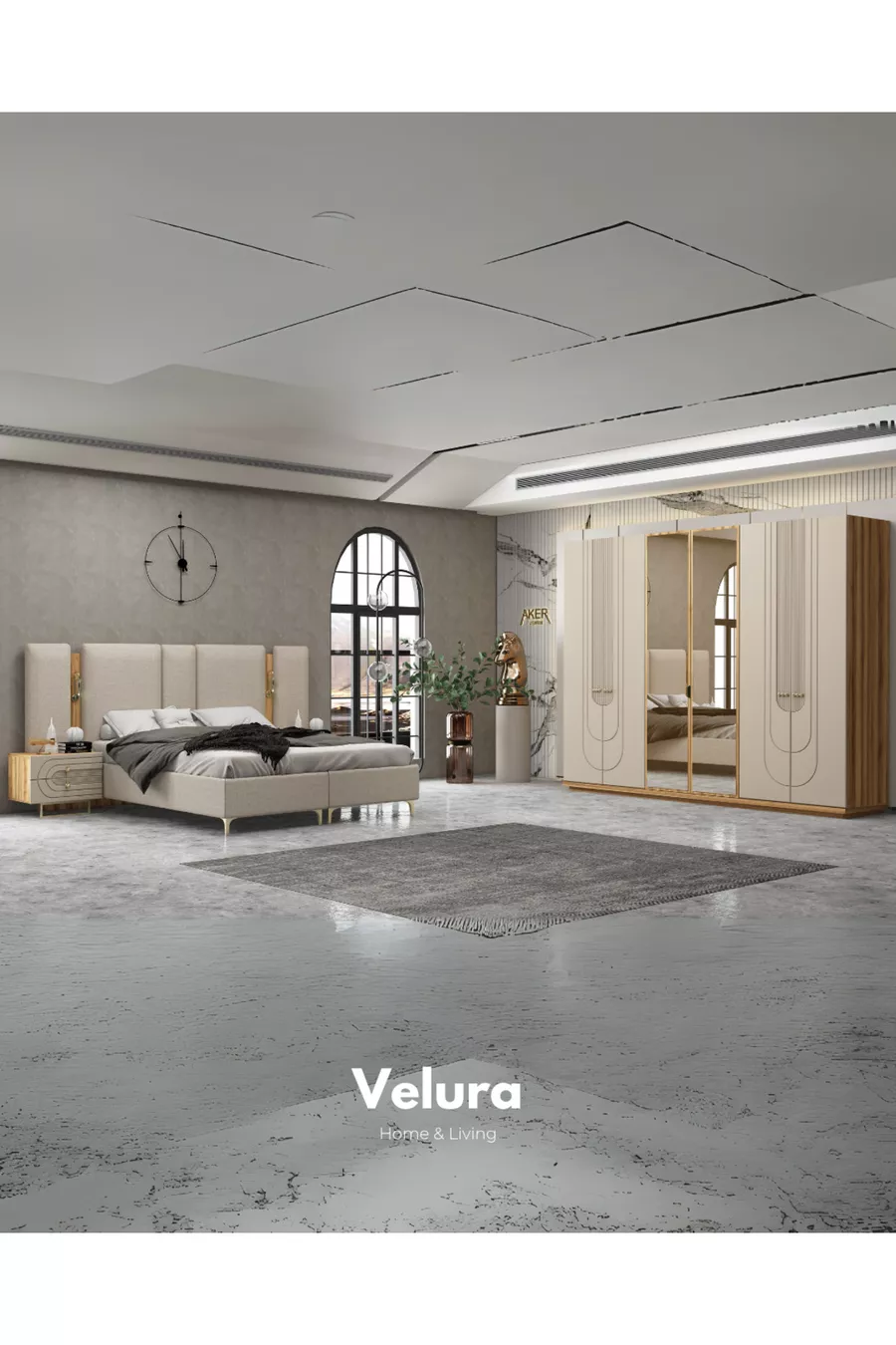 Состав комплекта: Кровать + 2 прикроватные тумбочки + комод + шкаф + зеркало