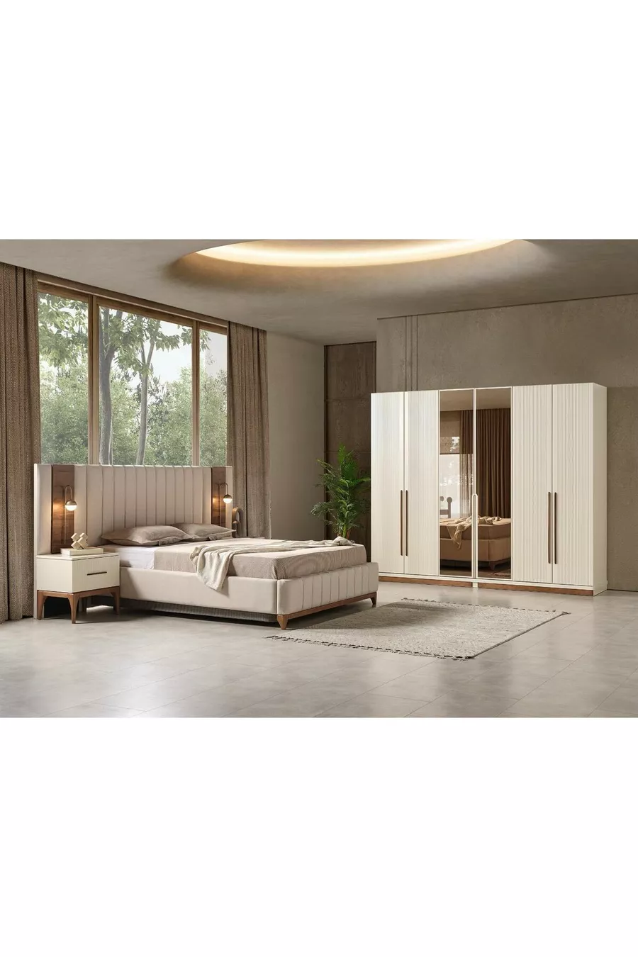 Состав комплекта: кровать + 2 тумбочки + комод + шкаф