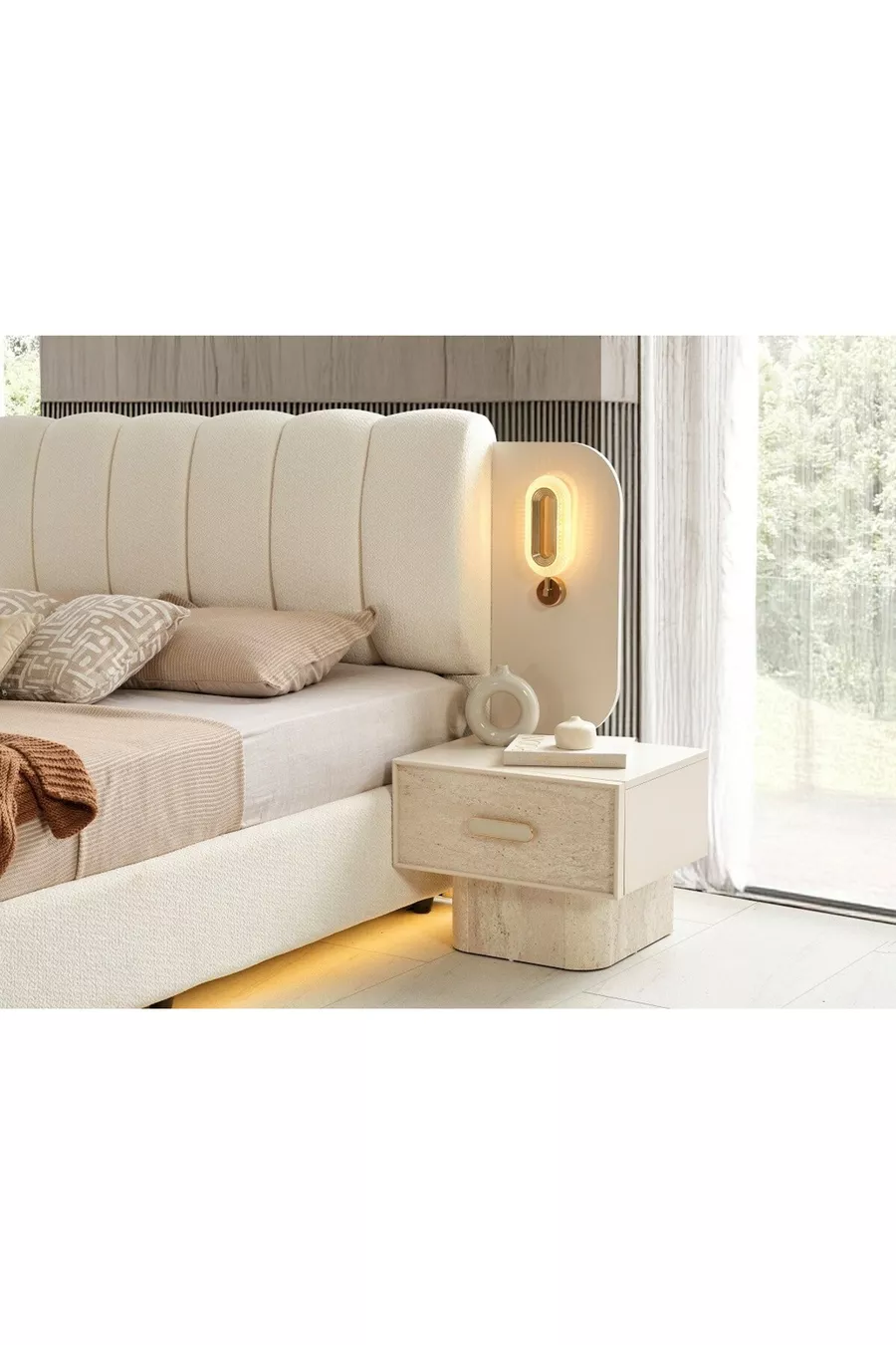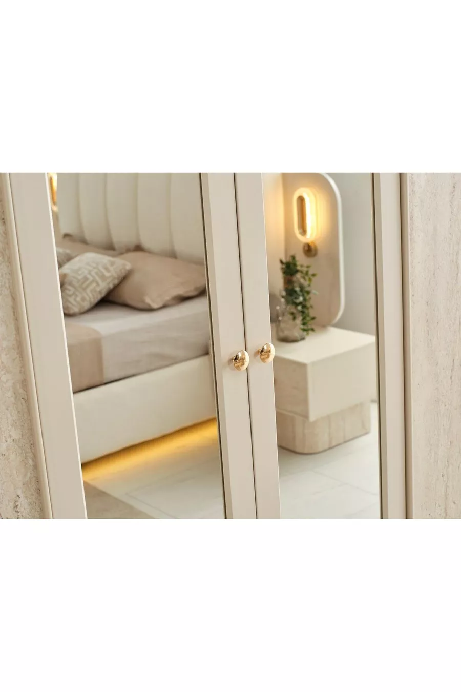 Комплектация: Шкаф + 2 прикроватные тумбочки + комод + изголовье кровати