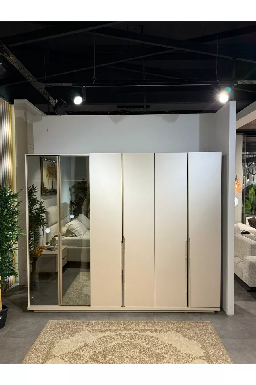 Цвет: Бежевый Гарантийный срок: 2 года Размер кровати/основания: 160 х 200 Функция кровати: с основанием Функция шкафа: с дверцами Материал корпуса шкафа: ДСП Количество дверей: 6 Состав комплекта: Кровать с основанием + 2 тумбочки + комод + шкаф Стиль: Современный Тема / стиль: Современный Страна производства: TR Особенности: с дверцами