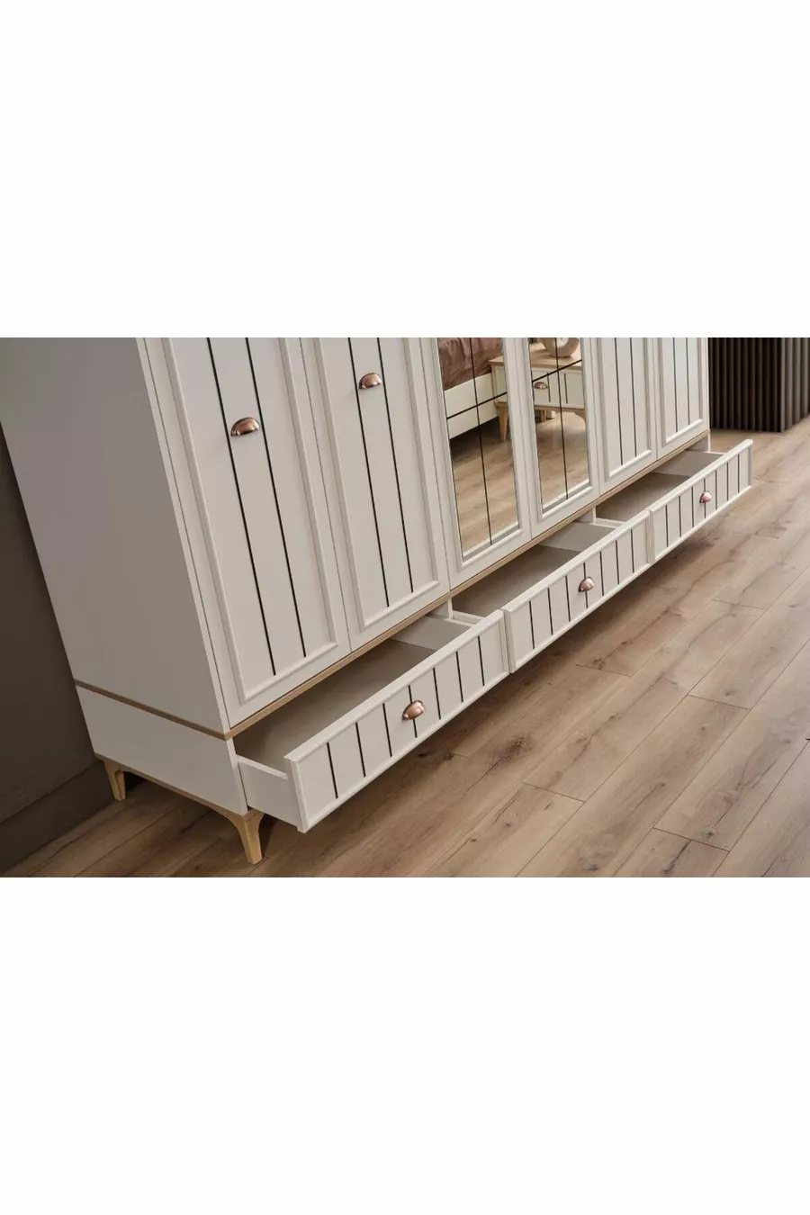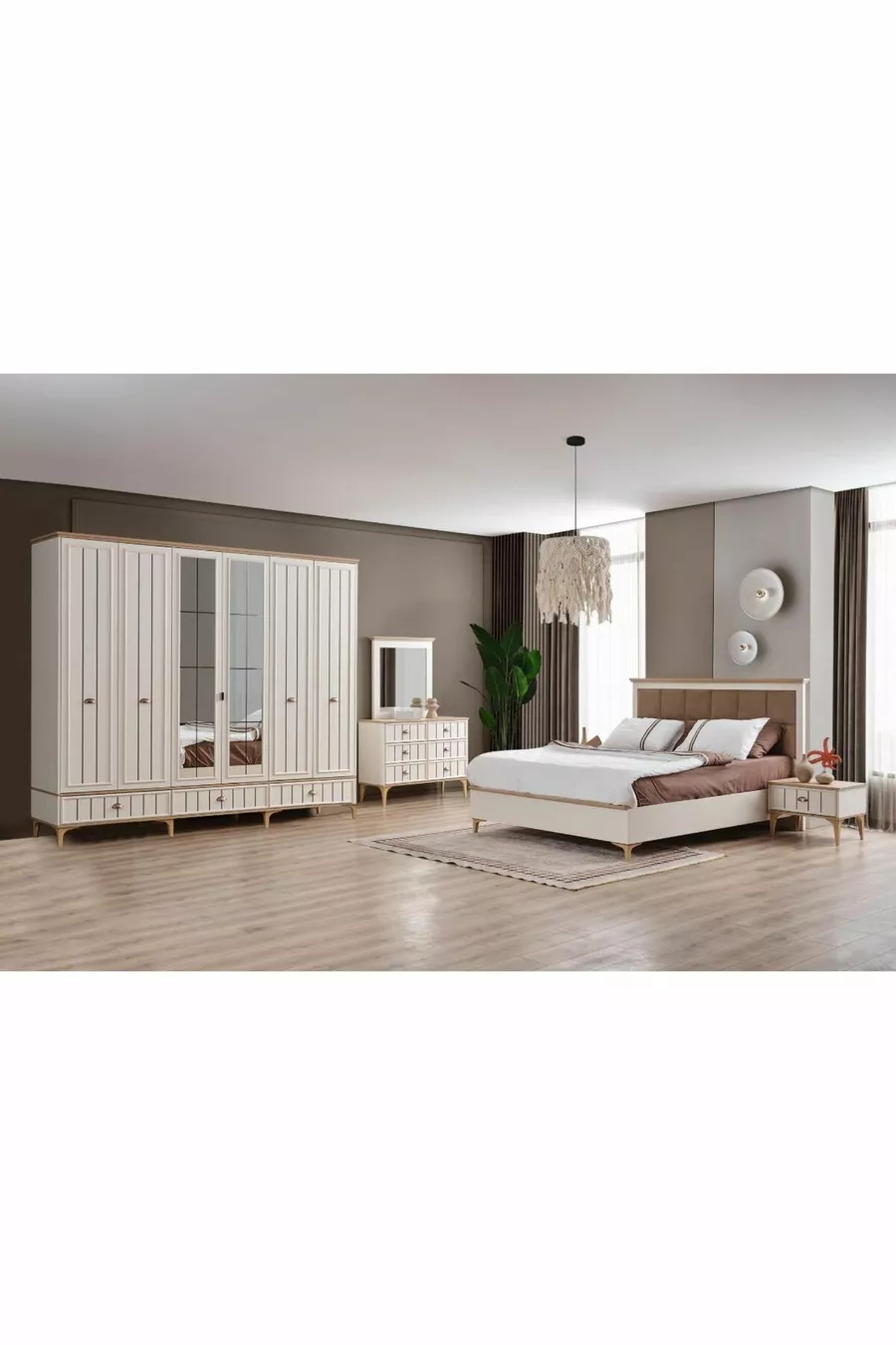 Состав комплекта: Шкаф + 2 прикроватные тумбочки + комод + изголовье кровати