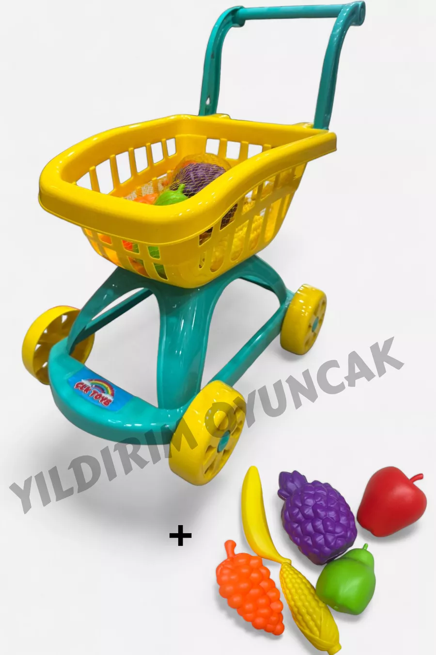 Тележка для рынка 7 предметов Сет из сетки для фруктов и овощей см - Игровая кухонная стойка с тележкой
