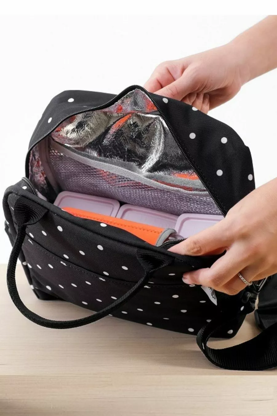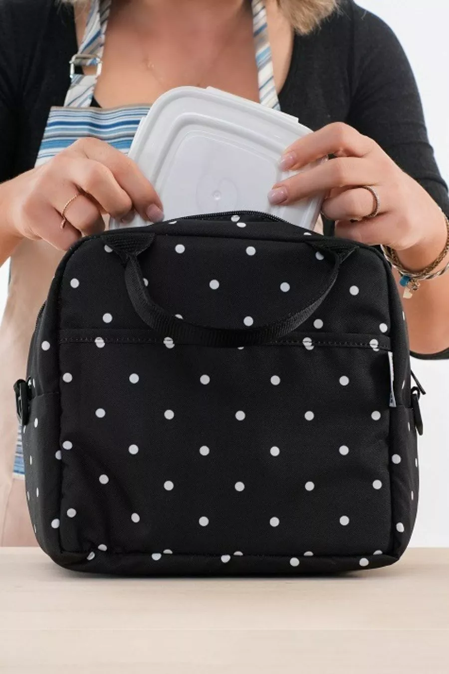 Термосумка для еды, сумка для переноски питания, теплоизоляционная, водонепроницаемая, черная с узором в горошек