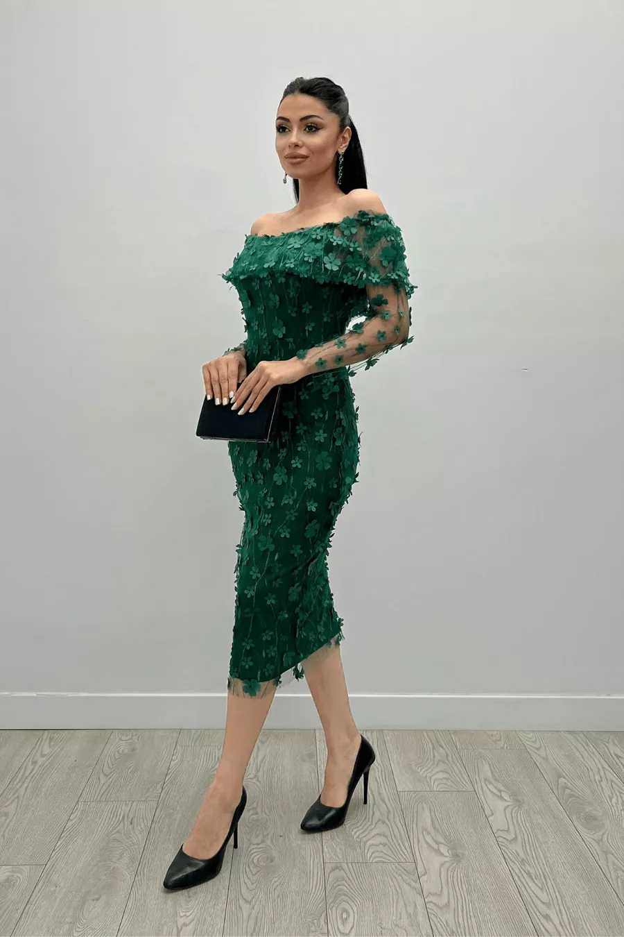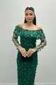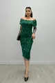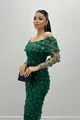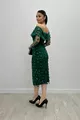 Трехмерное платье-карандаш из цветочной ткани с воротником-лодочкой - ZÜMRÜT GREEN