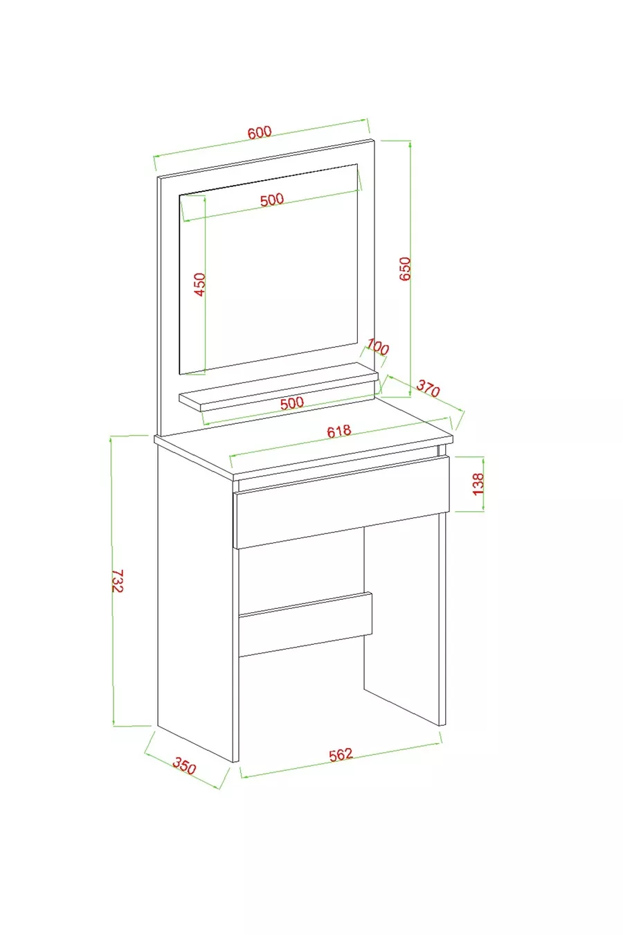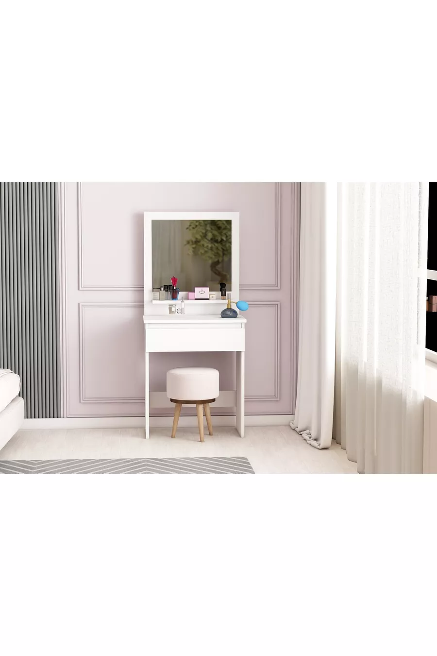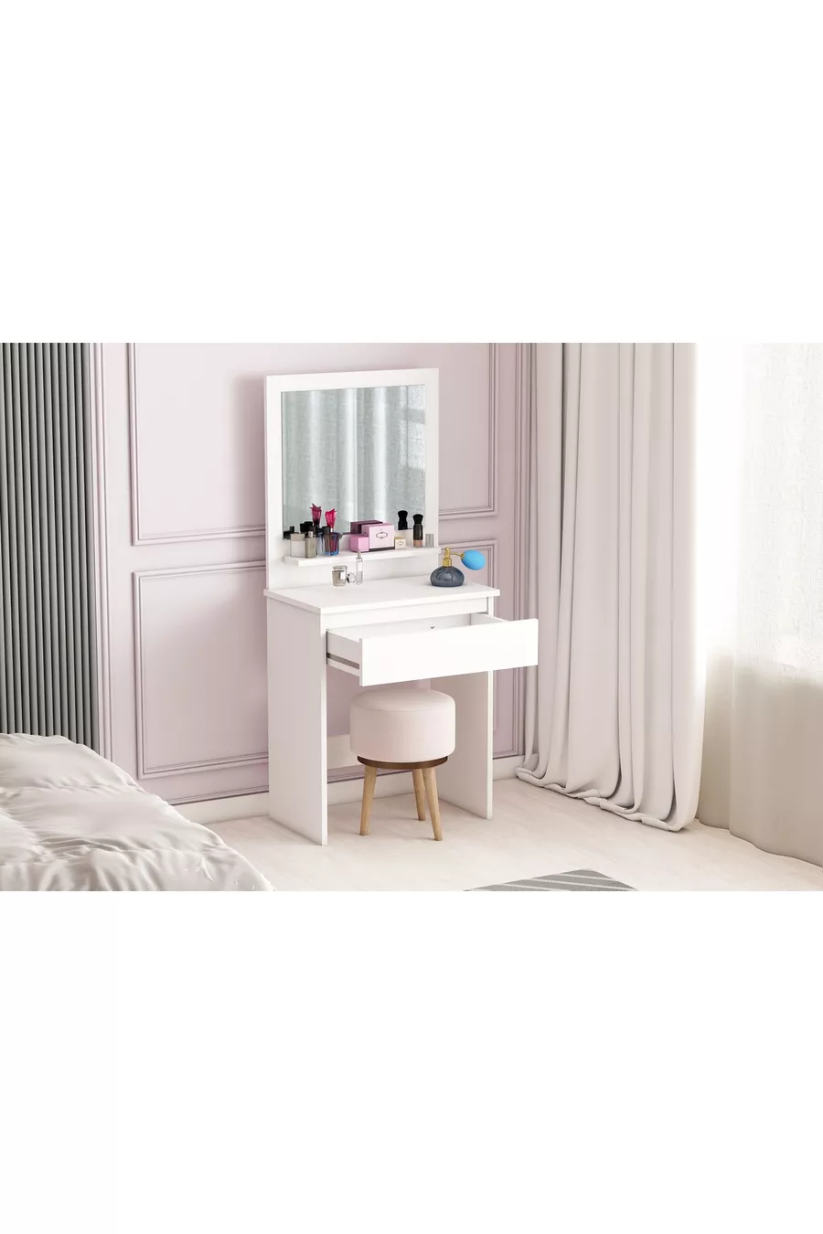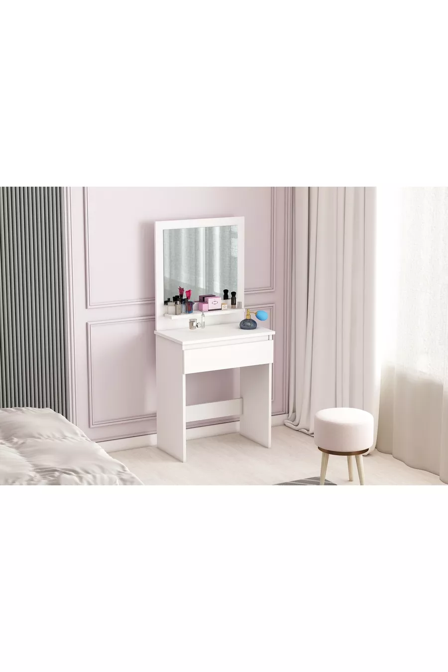 Туалетный столик Luna с полками, ящиками и зеркалом, белый