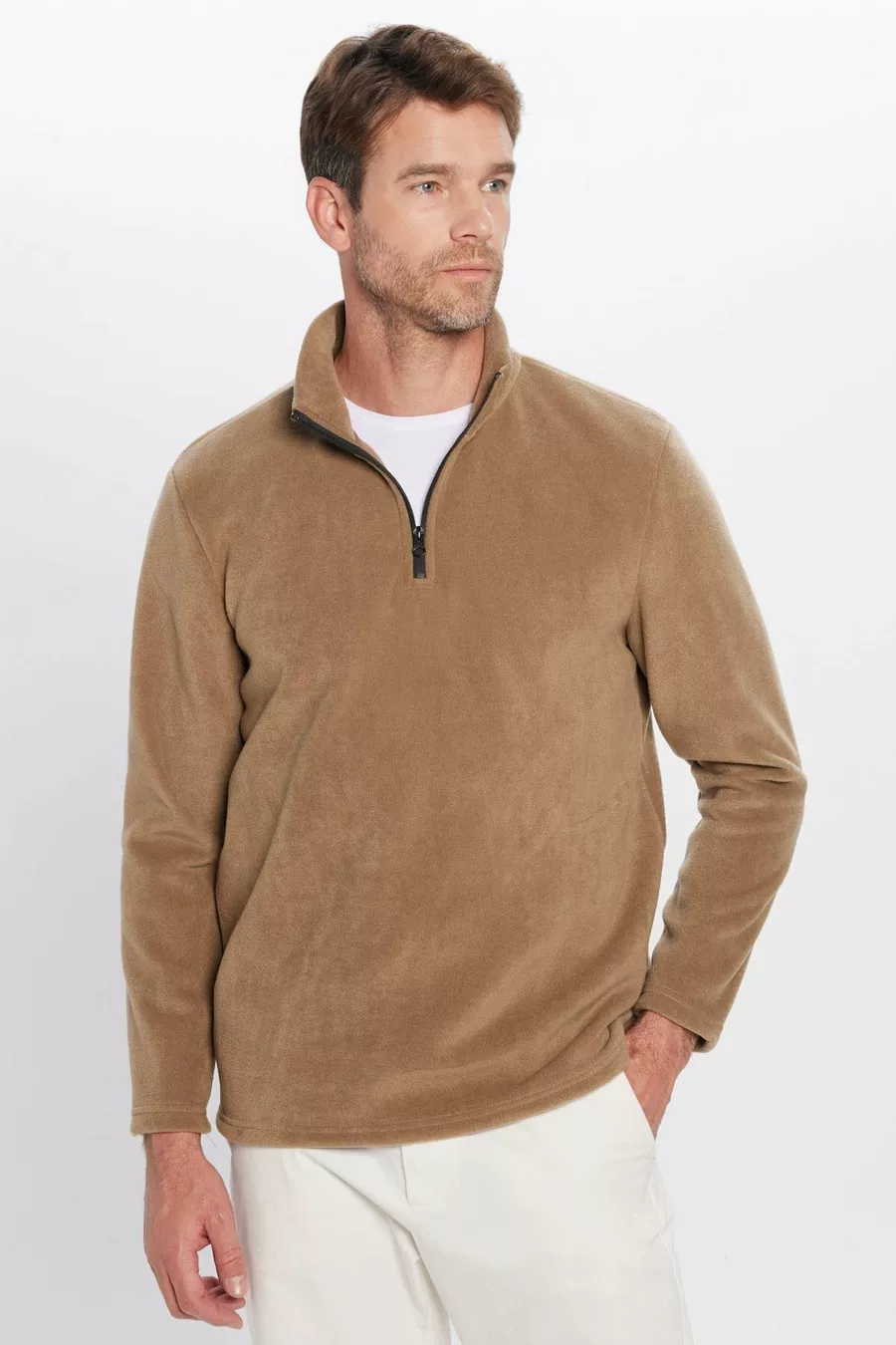 Унисекс стандартного кроя флисовый свитшот с воротником-лодочкой, стойкий к катышкам, холодозащитный, хаки