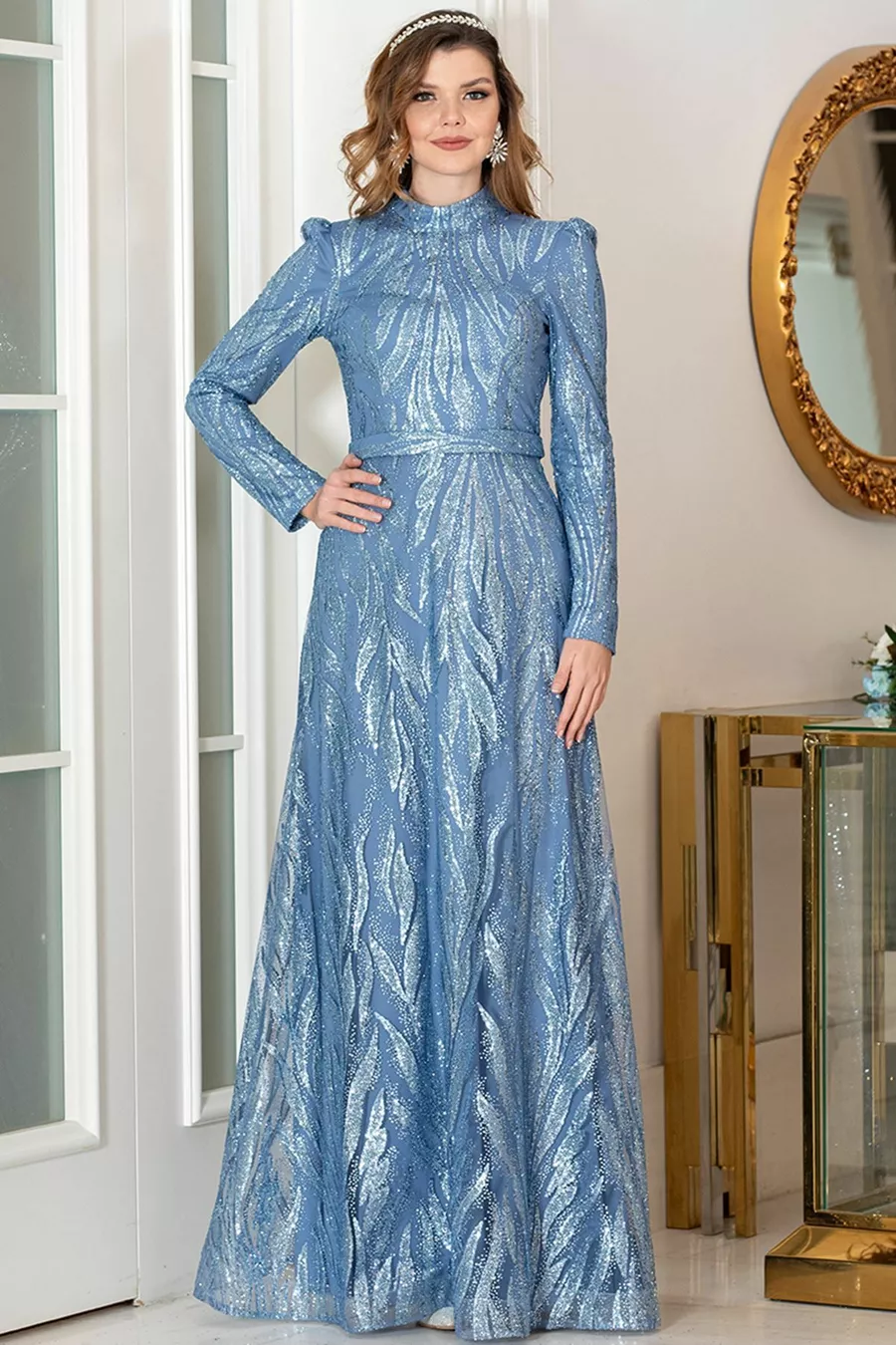 Хиджаб Вечерние Платья Серебристая Ткань Хиджаб Одежда Платье Хиджаб Вечерние Платья