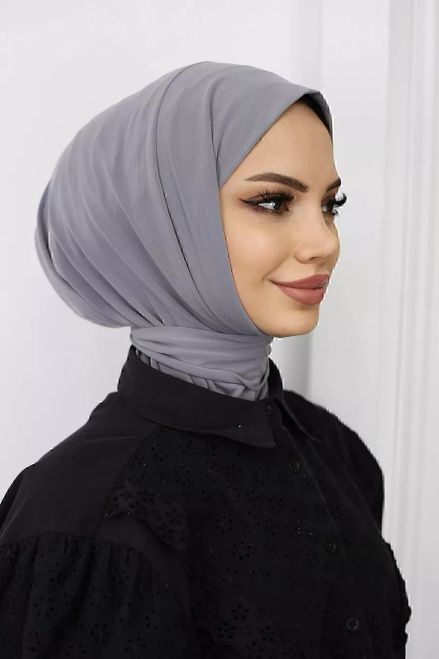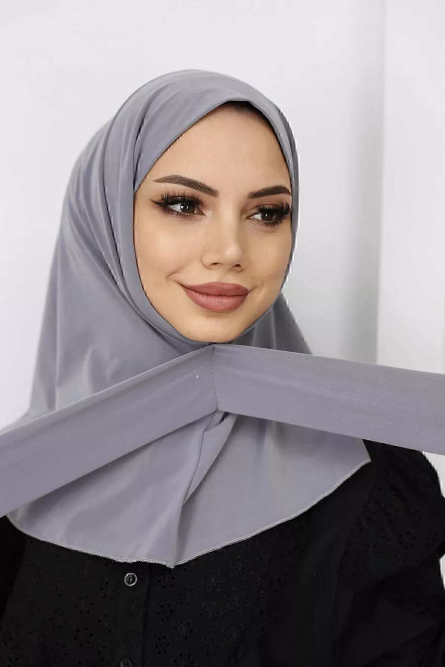 Хиджаб для женщин с кнопками, готовый тюрбан-шаль _Цвет дымчатый