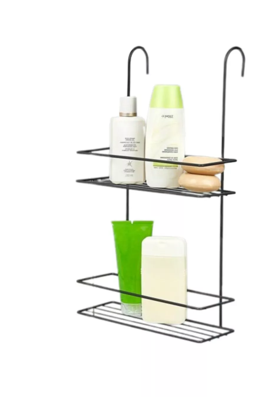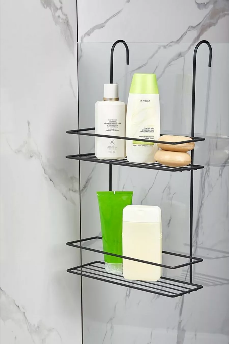 Черная силиконовая двухъярусная подвесная полка для ванной, держатель для мыла и шампуня, органайзер для душевой кабины