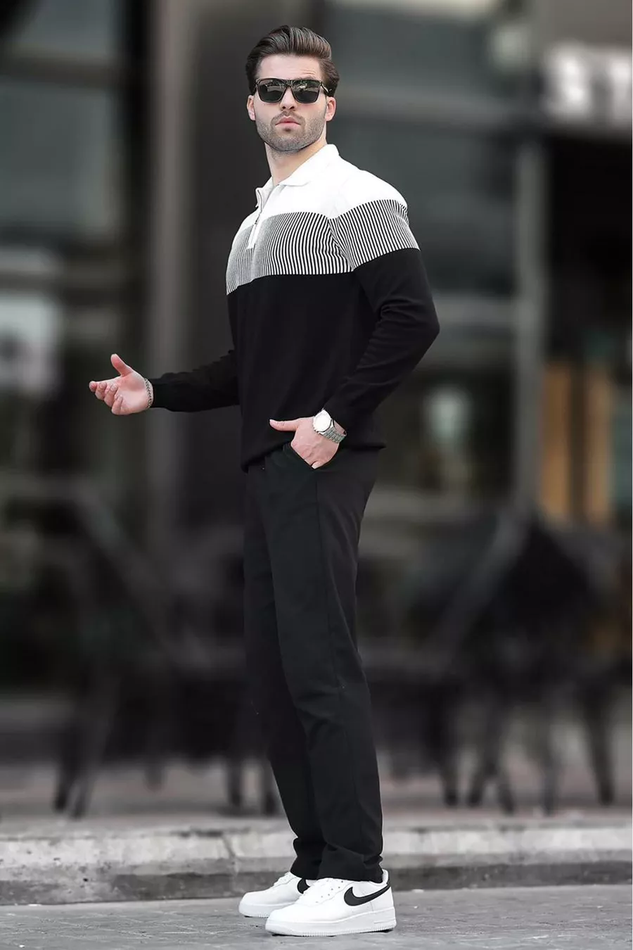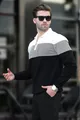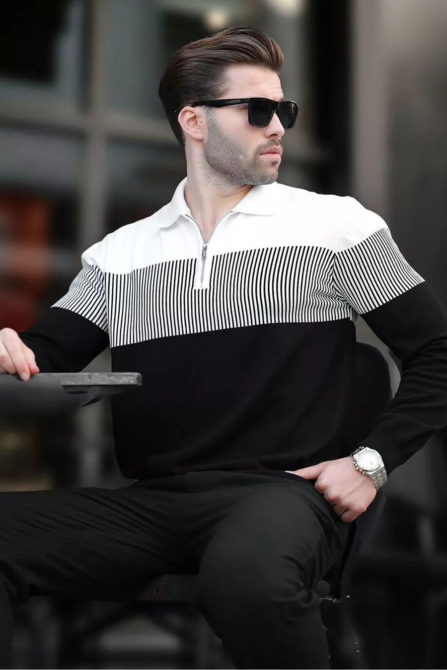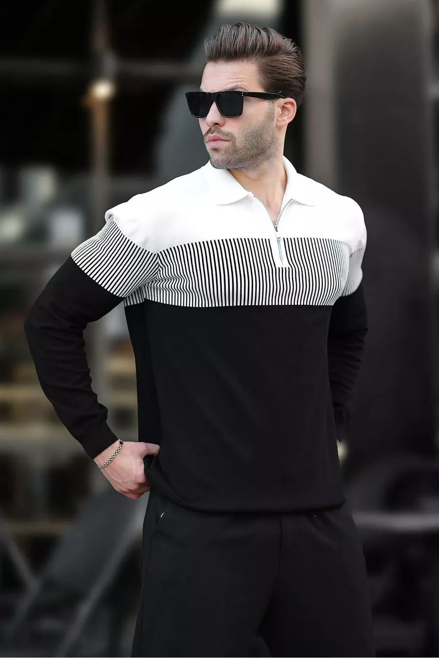 Черный свитер с длинными рукавами и контрастной цветной вставкой, с воротником на молнии