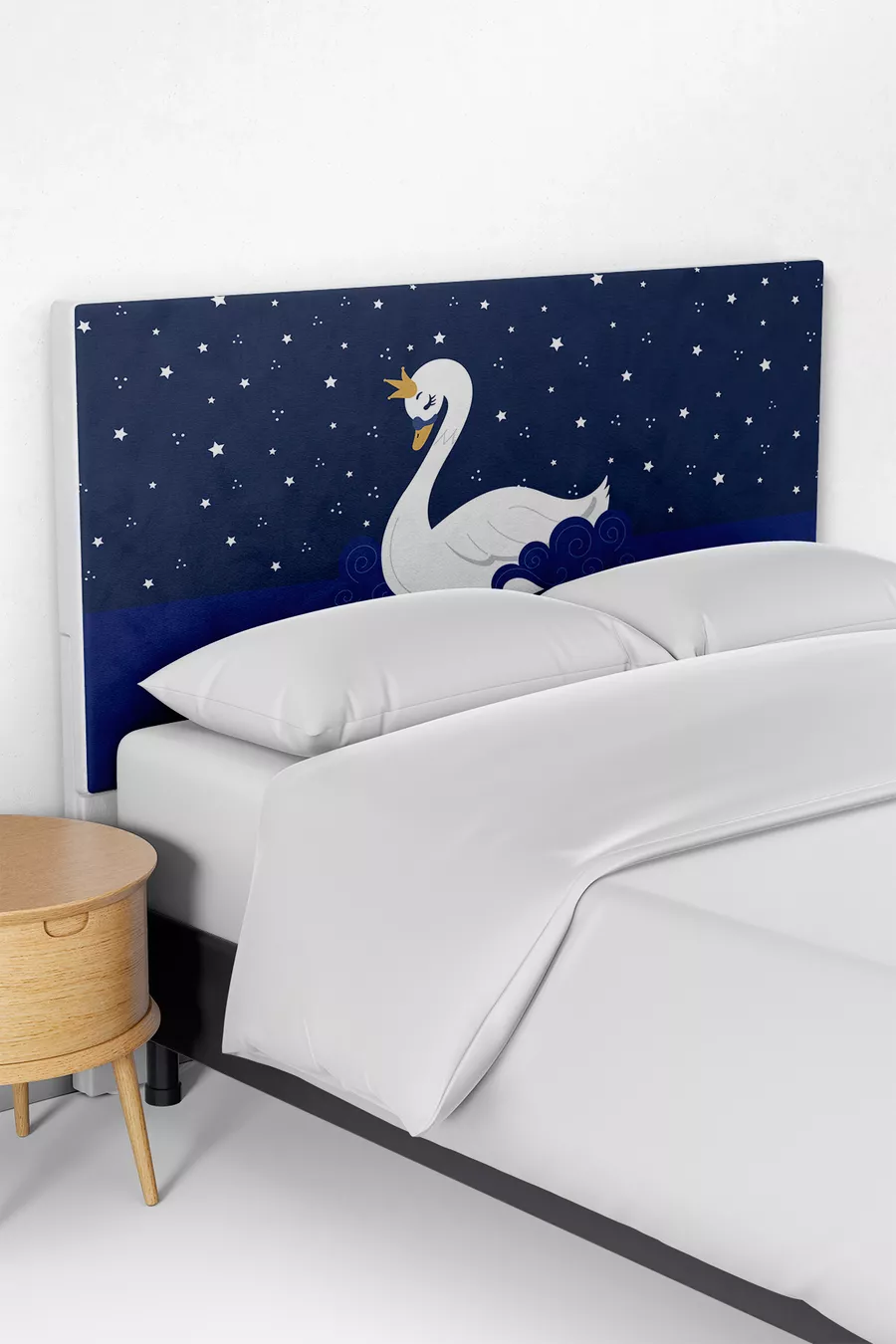 Чехол на изголовье детской кровати с изображением голубого лебедя
