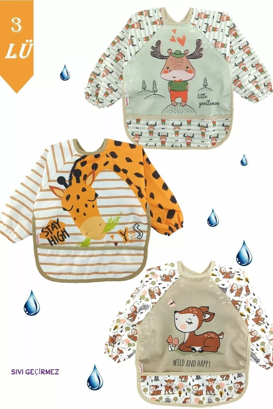 3 штуки водонепроницаемых слюнявчиков для кормления с рисунками антилопы, оленя и жирафа, для детей 0-3 лет