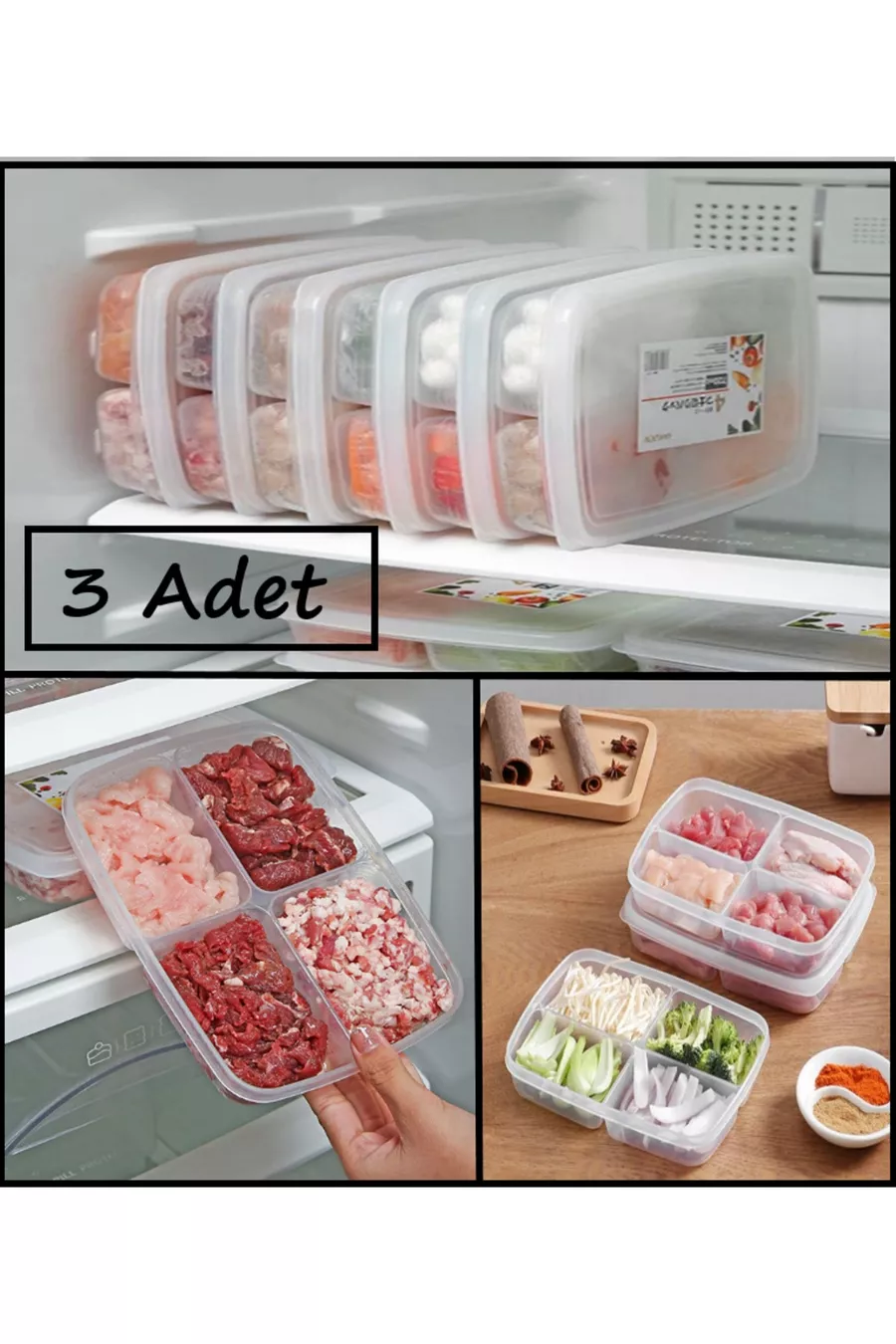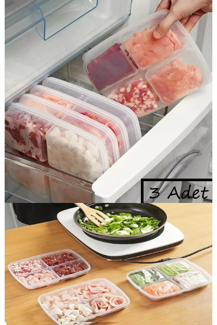 3 штуки контейнеров для еды с 4 отделениями для мяса и овощей – органайзер для замороженной курицы кусочками и фарша