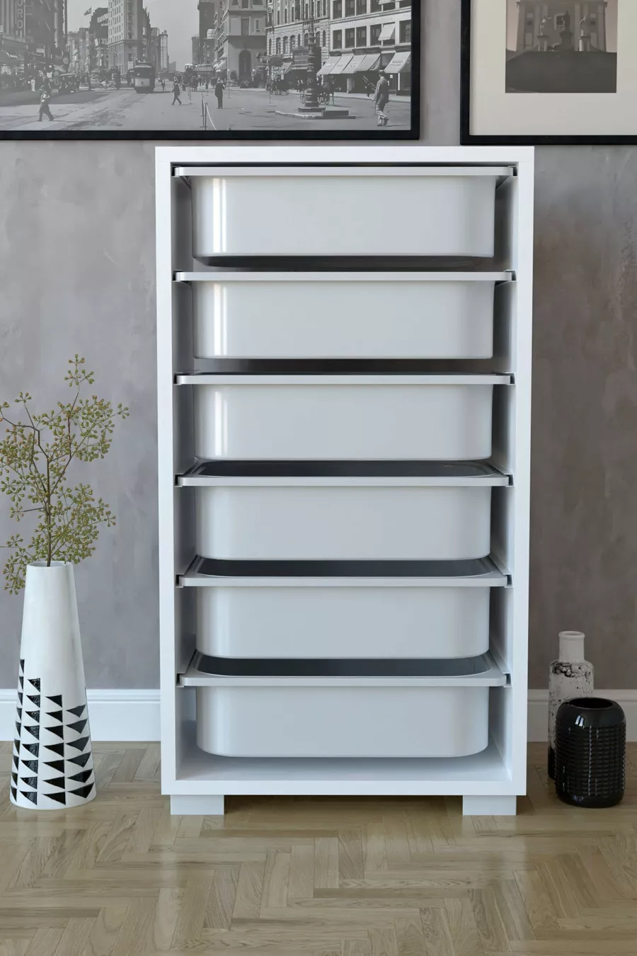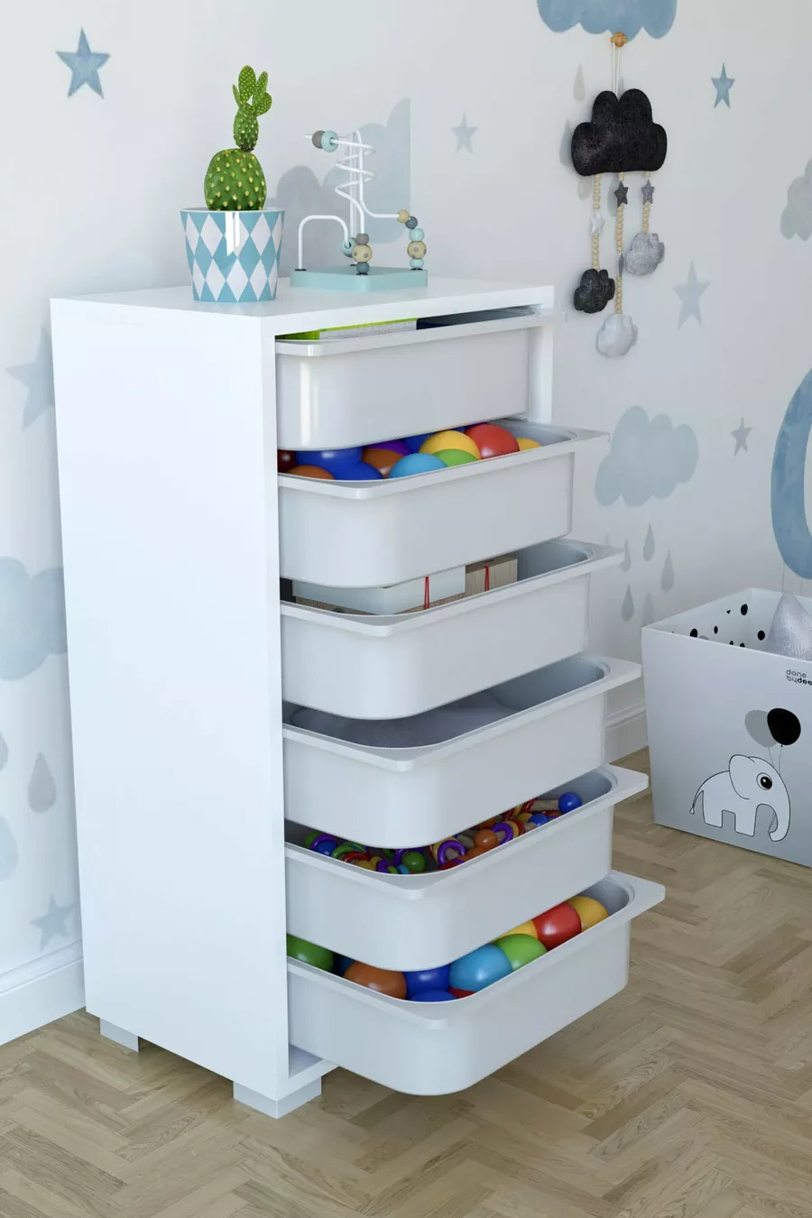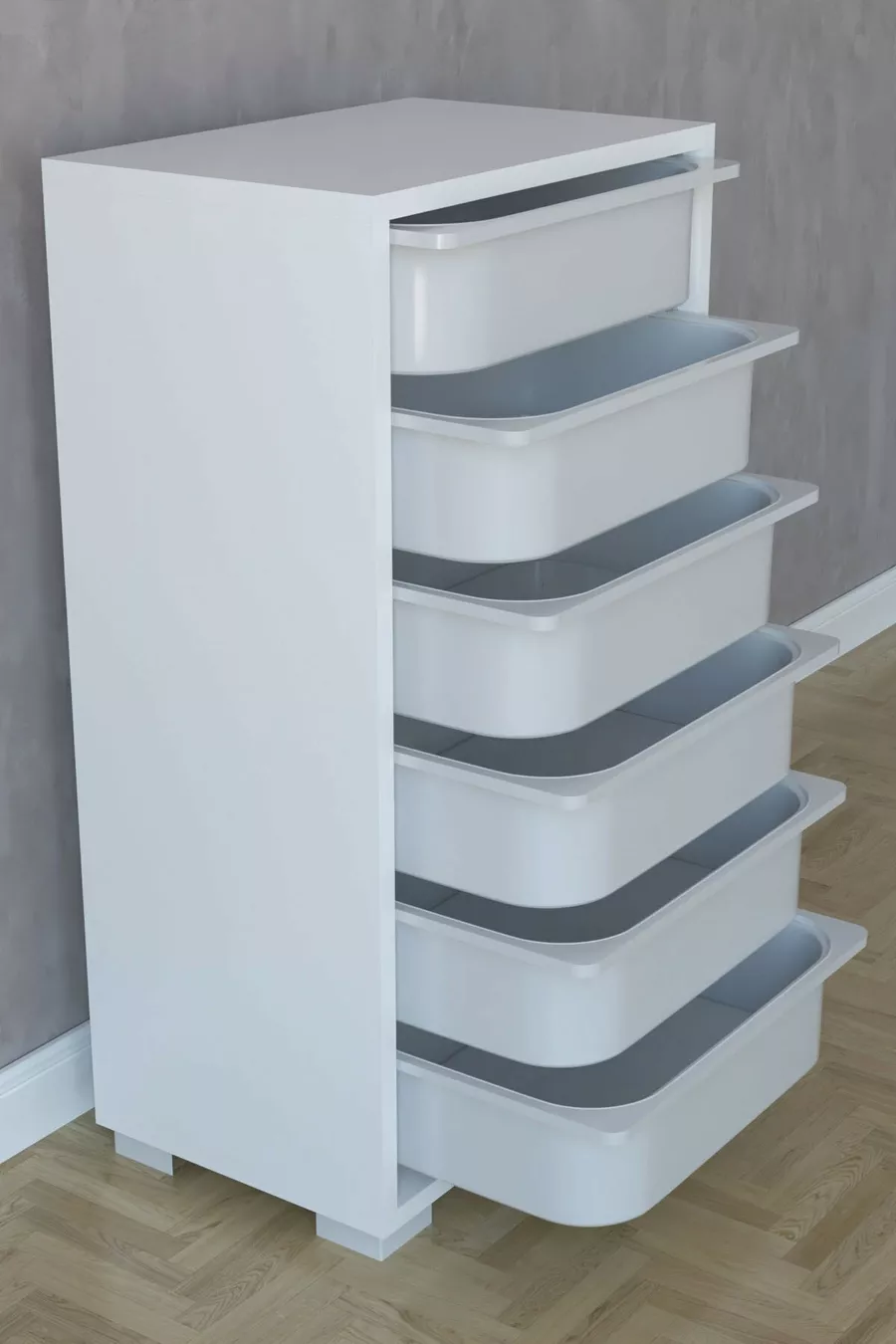 Материал: ДСП Количество ящиков: 6 Ширина: 45 см Глубина: 30 см Высота: 83 см Цвет: Белый Тема / Стиль: Современный Возраст: 4 - 8 лет
